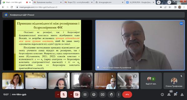 Завідувач кафедри фізики і методики навчання фізики, астрономії Вінницького державного педагогічного університету імені Михайла Коцюбинського професор Володимир Заболотний детально проаналізував сучасні підходи до формування основних одиниць вимірювання фізичних величин, тобто навів сучасний погляд на їх еталони з позицій наукових досягнень останніх 20 років. Логічним продовженням дискусії був виступ професора Сергія Кузьменкова завідувача кафедри фізики Херсонського державного університету, який на основі постійних та сталих Всесвіту запропонував Код Всесвіту з точки зору фізики.