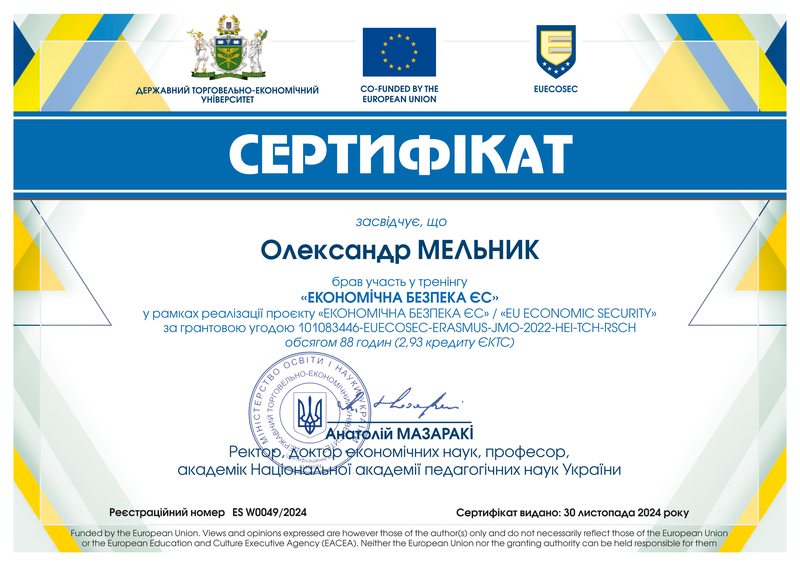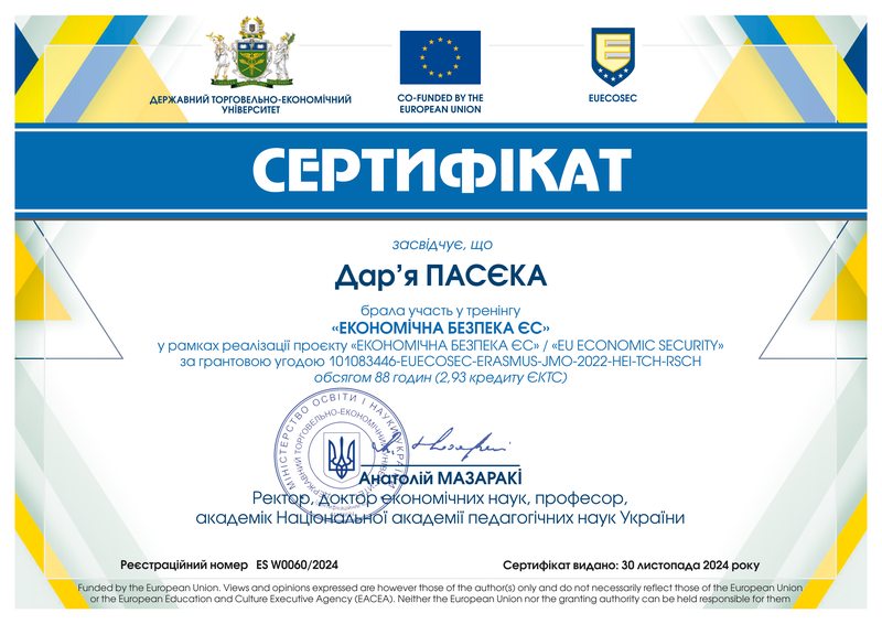 Активно завершили доволі продуктивний семестр 2024-2025 навчального року викладачі кафедри менеджменту та підприємництва ЦДУ ім. В. Винниченка. Разом зі студентами спеціальності 051 Економіка ОП Економічна безпека груп ЕК22Б, ЕК22БС та ЕК24Б приймали участь в семінарі-конференції «Забезпечення економічної безпеки ЄС в умовах гібридних загроз», що відбувалась у рамках 5 і 6 модулів проєкту «Економічна безпека ЄС (EUECOSEC)» та отримали сертифікати про підвищення кваліфікації.