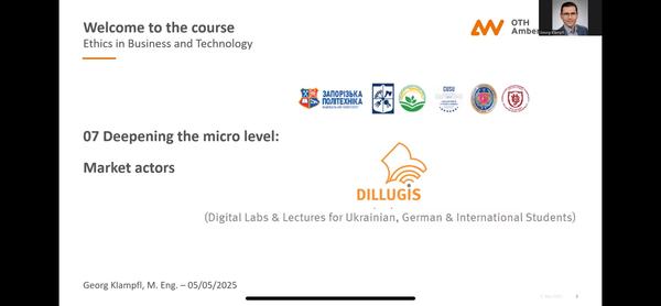Центральноукраїнський державний університет імені Володимира Винниченка бере активну участь у реалізації міжнародного проєкту DILLUGIS 25 (Digital Labs and Lectures for Ukrainian, German and International Students), ініційованого Східно-Баварським університетом прикладних наук Амберг-Вайден (OTH Amberg-Weiden) у рамках програми DAAD «Цифрова Україна: забезпечення академічного успіху в умовах кризи».