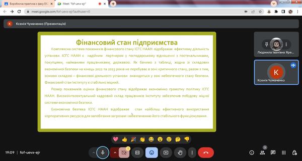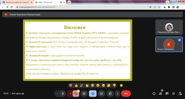 Здобувачі вищої освіти спеціальності Економіка (Економічна безпека) захистили результати виробничої практики