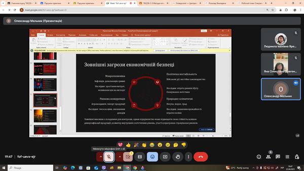 Практиканти якісно проаналізували основні зовнішні та внутрішні фактори, що впливають на економічну безпеку підприємства на сучасному етапі функціонування, чітко визначили стратегію підвищення економічної безпеки бази практики. Захист практики став успішним стартом весняної заліково-екзаменаційної сесії студентів випускного курсу. Ми бажаємо нашим випускникам удачі на сесії та на завершальному етапі навчання – успішного складання атестації!