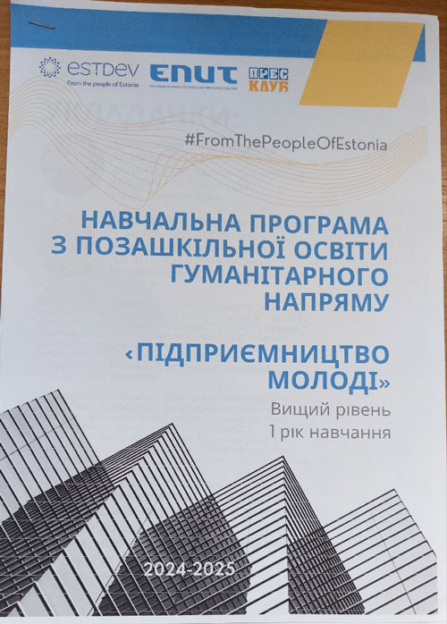 Заступниця директора з навчально-виховної роботи ДЗП(ПТ)О «Кропивницький професійний ліцей сфери послуг і торгівлі» Алєксеєвець Вікторія Саввична та кандидатка педагогічних наук, доцентка, доцентка кафедри педагогіки та спеціальної освіти ЦДУ ім. В. Винниченка Краснощок Інна Петрівна розповіли про особливості програми з позашкільної освіти гуманітарного напряму «Підприємництво молоді», що розроблена в рамках проєкту «Нові можливості українських жінок та молоді», що його втілюють громадська організація «Прес-клуб реформ» (Кропивницький, Україна) та Естонський жіночий центр досліджень і ресурсів (Таллінн, Естонія) та фінансується ESTDEV – Eesti Rahvusvahelise Arengukoostoo Keskus EST, Естонським центром міжнародного розвитку.