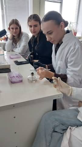Бойко Вікторія, Тимкович Каріна та Сабіров Богдан. У межах дисципліни «Теорія та методика організації лабораторного практикуму з біології» вони готували обладнання, реактиви, мікроскопічні матеріали, допомагали коледжанам виконувати завдання, координували хід досліду й підтримували порядок у лабораторії.