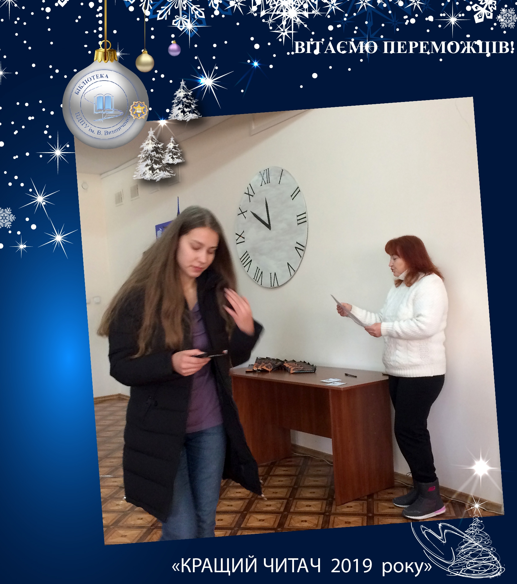 В День Святого Миколая бібліотека ЦДПУ ім. В Винниченка традиційно нагороджувала переможців рейтингу КРАЩИЙ ЧИТАЧ 2019 РОКУ. Щире спілкування, солодкі подарунки та відзнаки створили святковий настрій. Дякуємо переможцям та бажаємо щасливих свят!