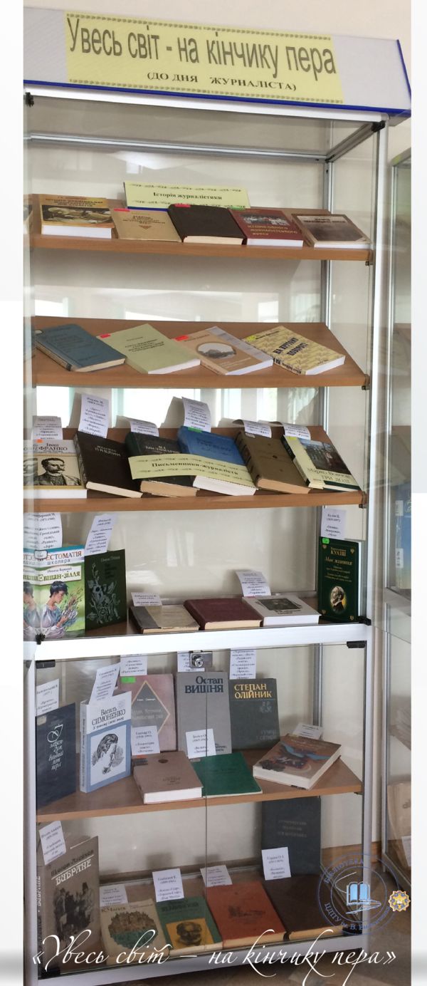 До Дня журналіста, який святкується 6 червня, в читальному залі філологічних дисциплін розгорнута тематична виставка.