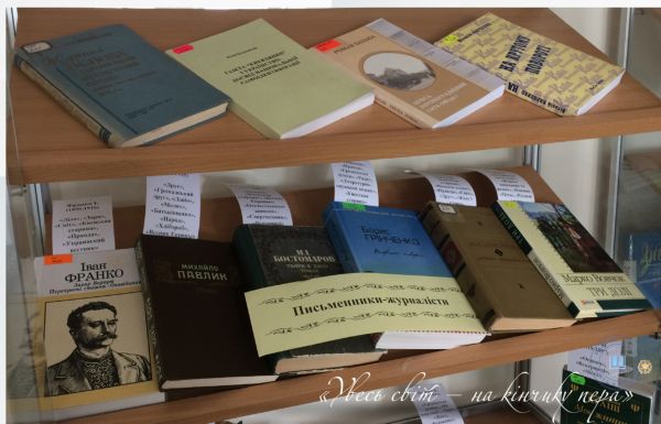 Цікавою частиною виставки є рубрика «Письменники-журналісти». Більшість із цих імен українському читачеві вже відома. Творчість письменників на журналістській ниві віддзеркалює проблеми сучасності, є голосом тривоги за життя нації і водночас надії на виживання й удосконалення людства.