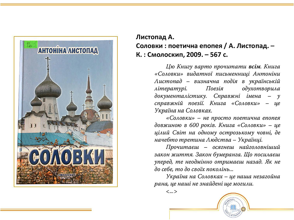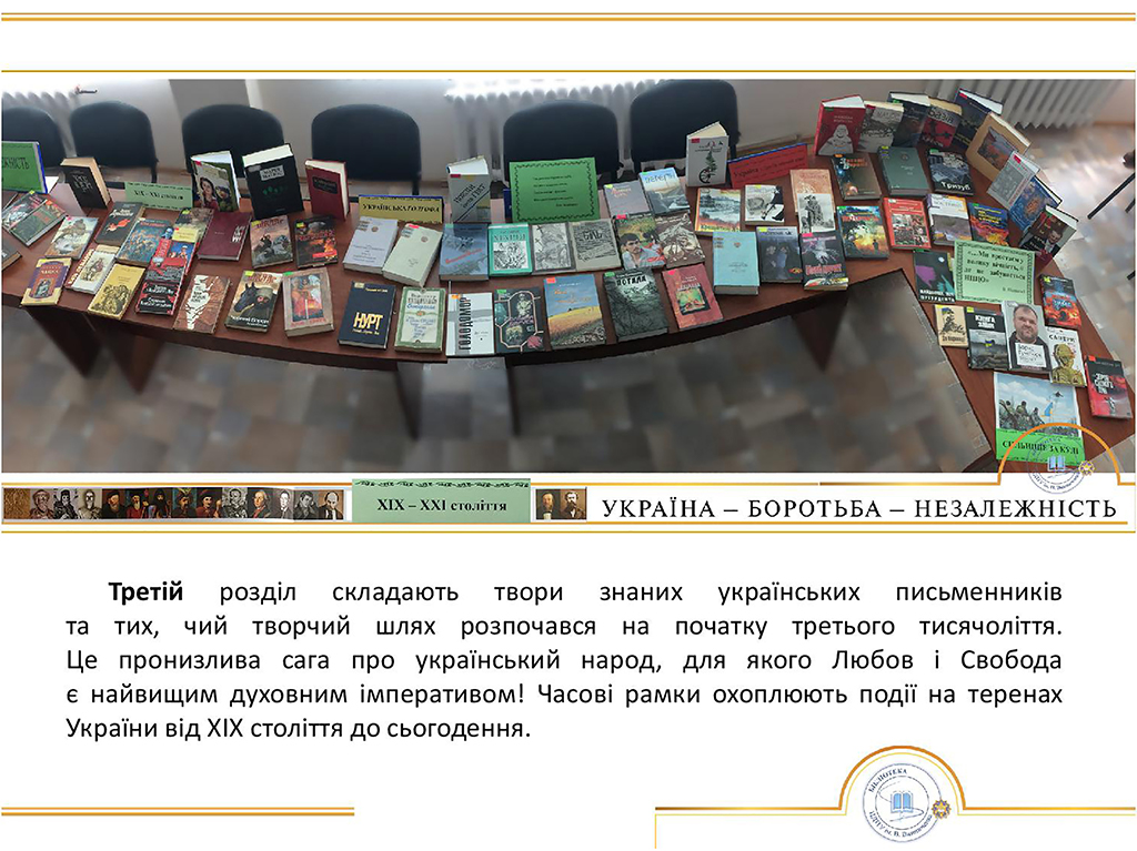 Виставка розрахована на широке коло читачів, які цікавляться національною історією і тисячолітньою традицією її передачі і відтворення у Слові!