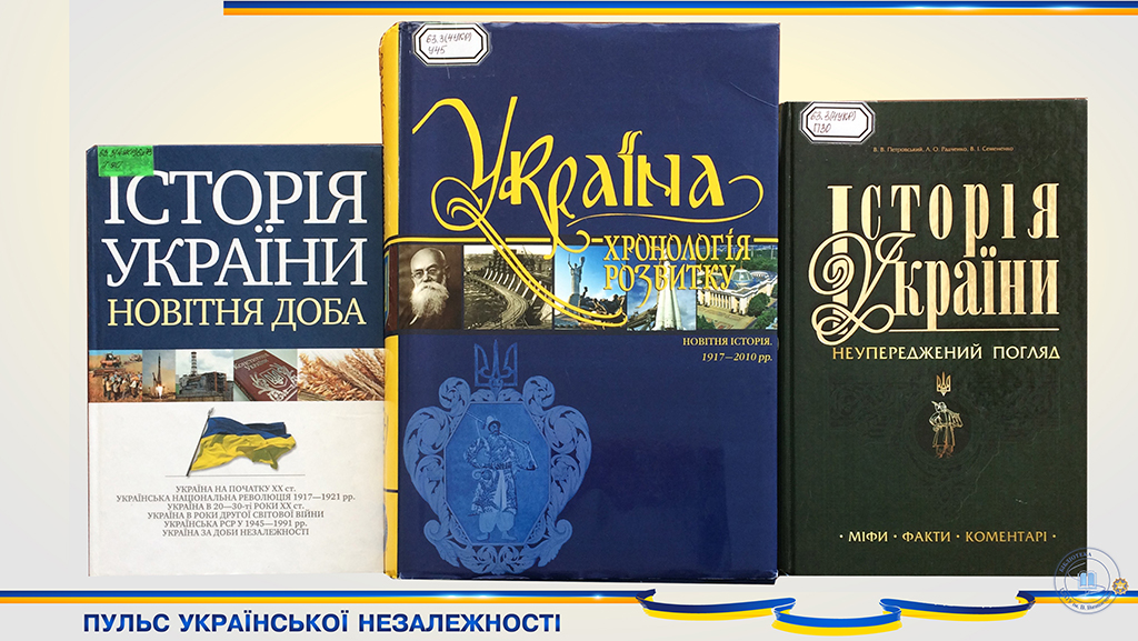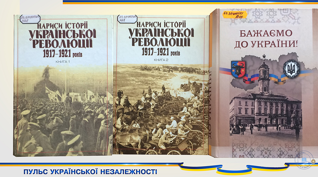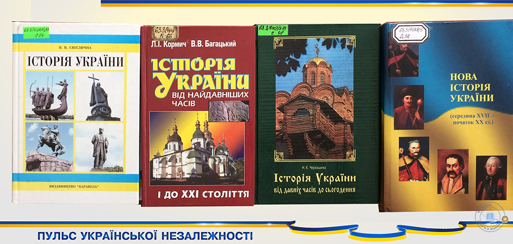 В рамках святкування 30-річчя незалежності України бібліотека презентує розділ історичної подорожі «Пульс української Незалежності». Представлені матеріали виставки є вікном у світ слави та болю, краси та звитяги наших предків, славної, нездоланно – незнищенної землі батьків наших.