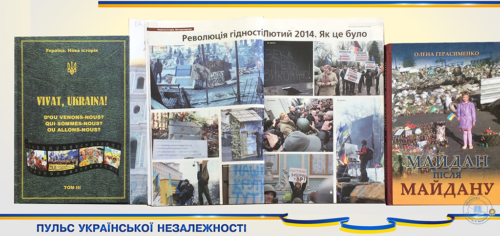 На тематичній експозиції представлені історичні, документальні джерела, присвячені історії формування української державності, боротьбі українського народу за незалежність своєї держави, вшануванню пам’яті громадян, які загинули у боротьбі за територіальну цілісність, матеріали історичних досліджень минулого та сьогодення нашої держави – епоху, яка наш народ переживає з високо піднятою головою.
