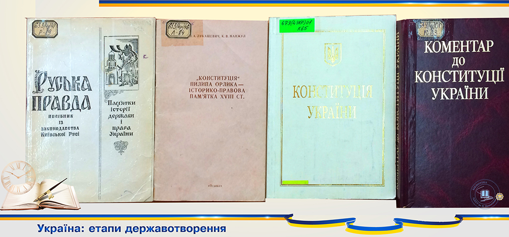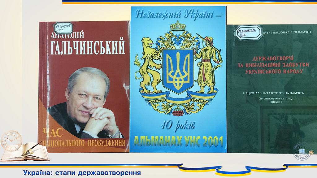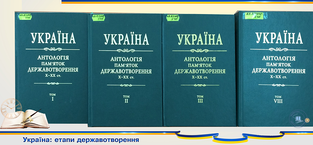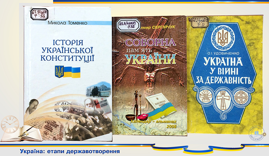 В рамках святкування 30-рііччя Незалежності України співробітники бібліотеки пропонують до Вашої уваги наступну експозицію «Україна: етапи державотворення».