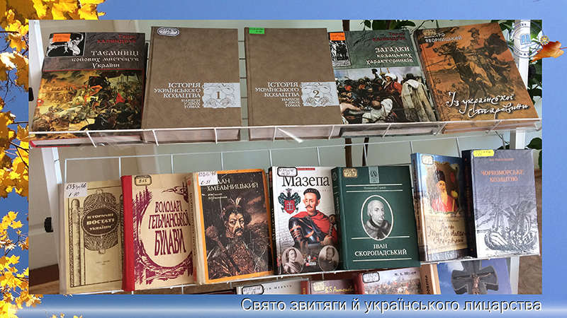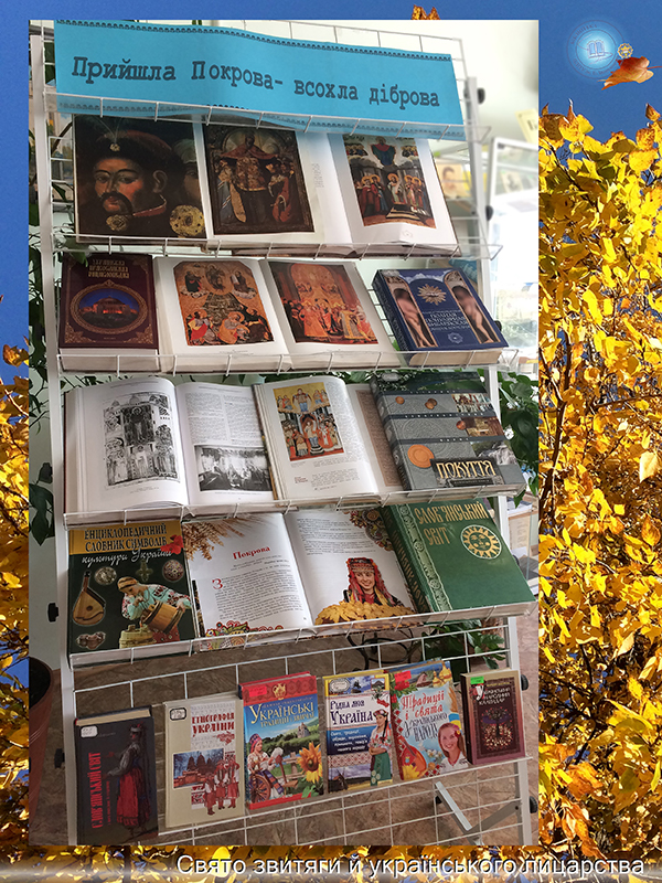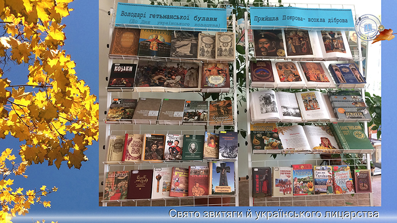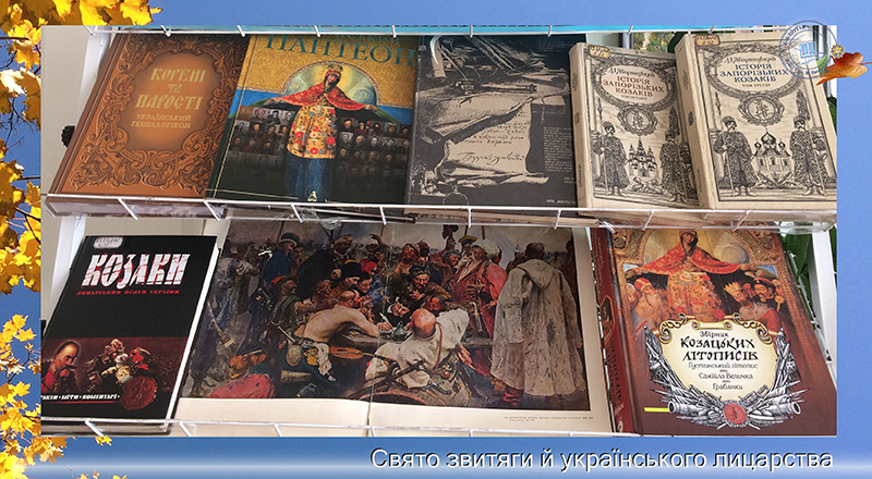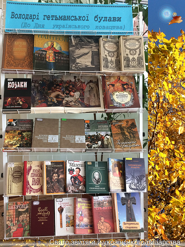 До Дня Покрови Пресвятої Богородиці, Дня Українського козацтва та Дня Захисника України універсальний читальний зал бібліотеки ЦДПУ імені В. Винниченка запрошує всіх охочих відвідати ілюстровану експозицію “Воїни. Історія українського війська” та книжкові виставки: "Володарі гетьманської булави", "Прийшла Покрова - всохла діброва".