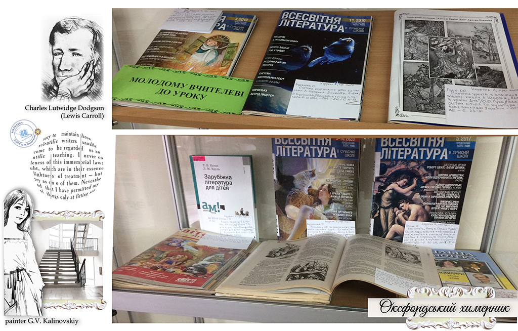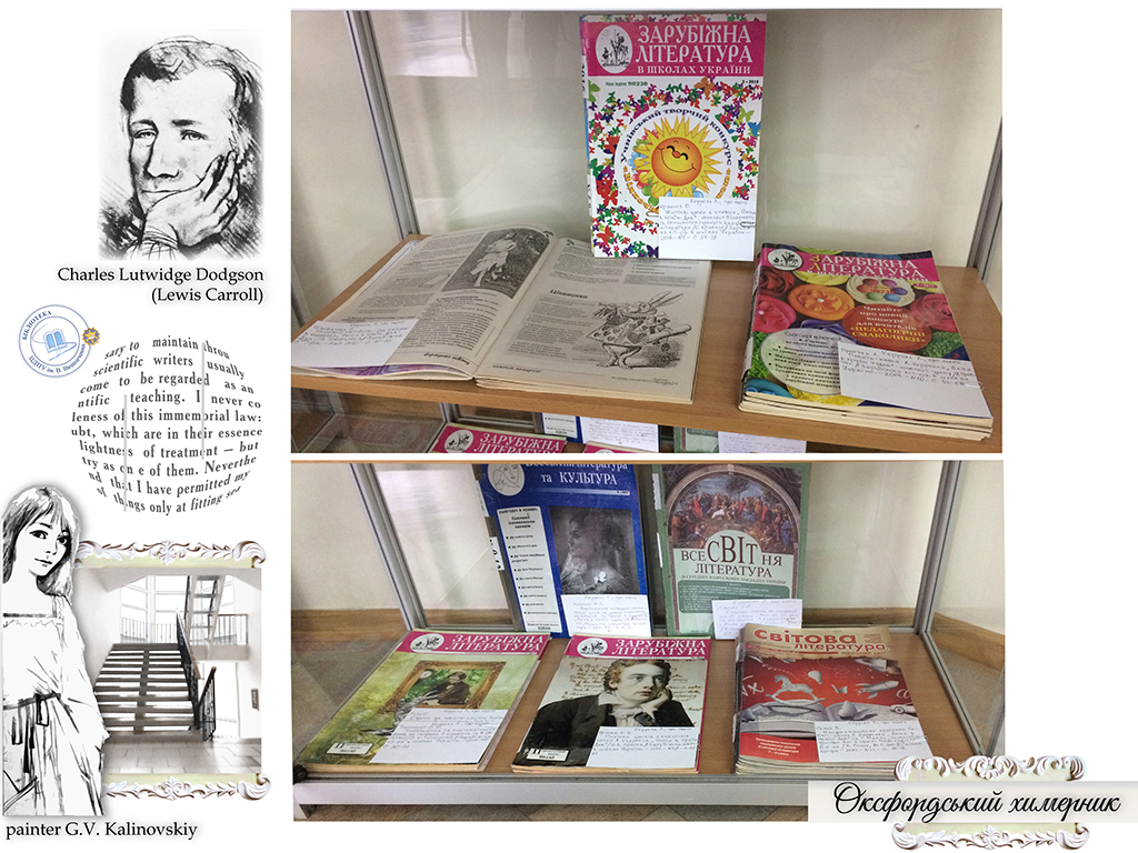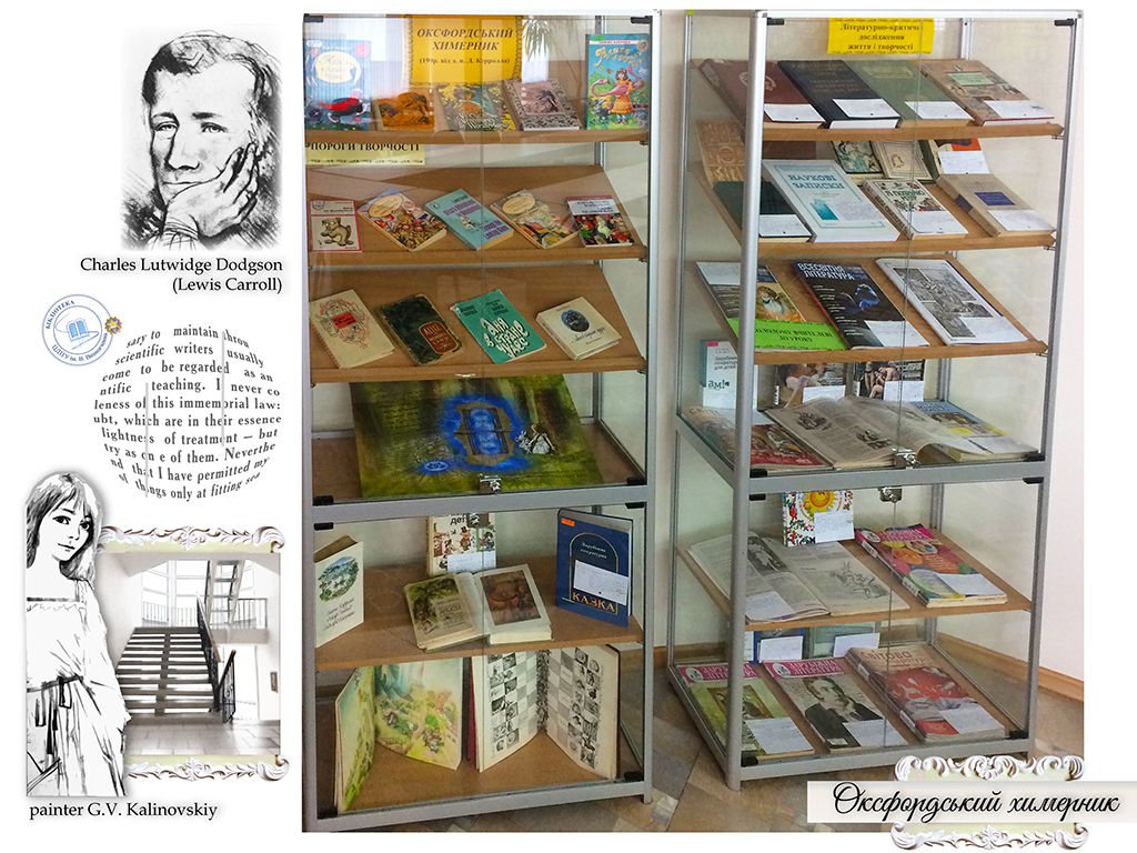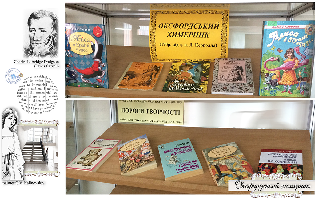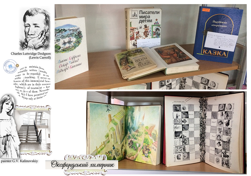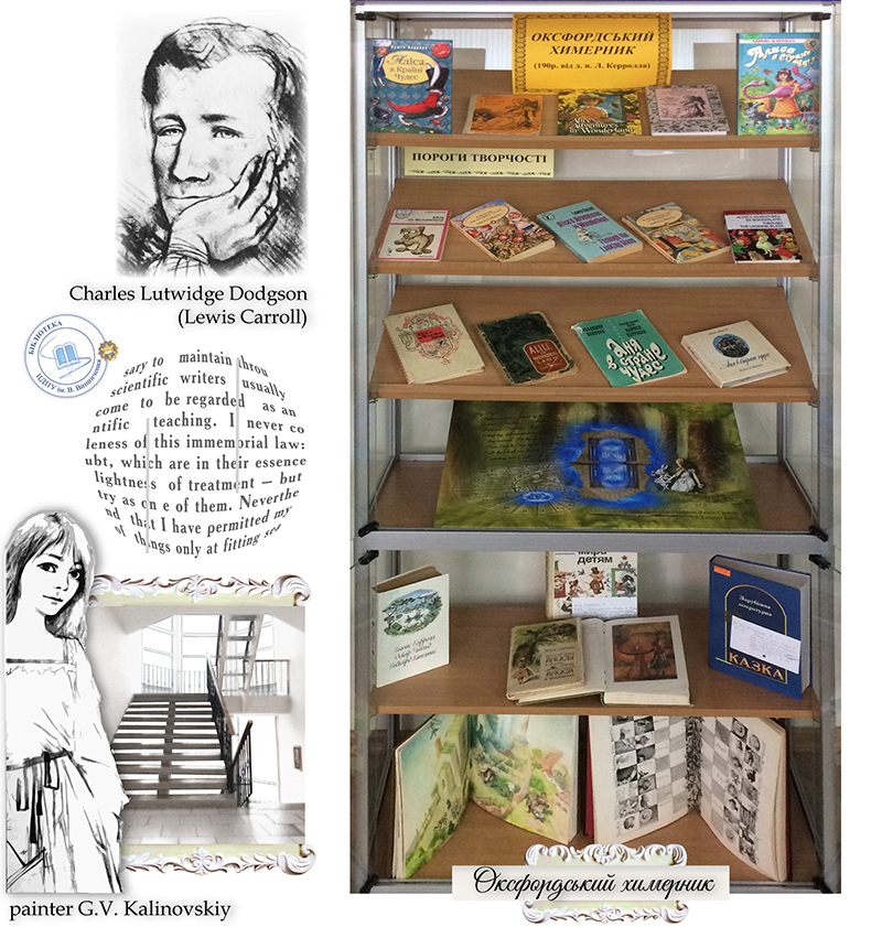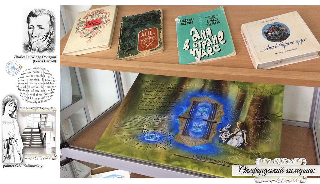 Читальний зал філологічних дисциплін запрошує на перегляд виставки, яка присвячена відомому англійському мрійнику, парадоксалісту, гумористу, професору математику й філософу Льюїсу Керроллу. Його 190-річний ювілей – це 160-річний ювілей його Аліси.
