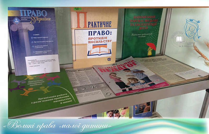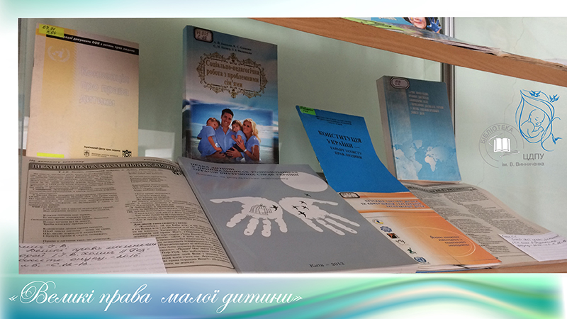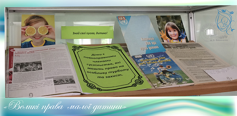 До Міжнародного дня захисту дітей універсальний читальний зал пропонує вашій увазі виставку «Великі права малої дитини». Рішення про відзначення Міжнародного дня захисту дітей 1 червня затвердила Міжнародна демократична федерація жінок у листопаді 1949 року.