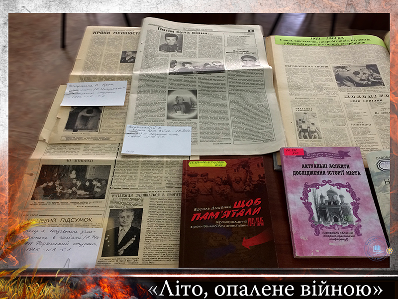 Безпосередню участь у боротьбі за волю, рідний край узяли і представники степової Кіровоградщини, їх безсмертний подвиг возвеличують як історично-документальні матеріали, так і нариси періодичних видань та наукові дослідження краєзнавців у рубриці «Кіровоградщина в роки Другої світової війни».