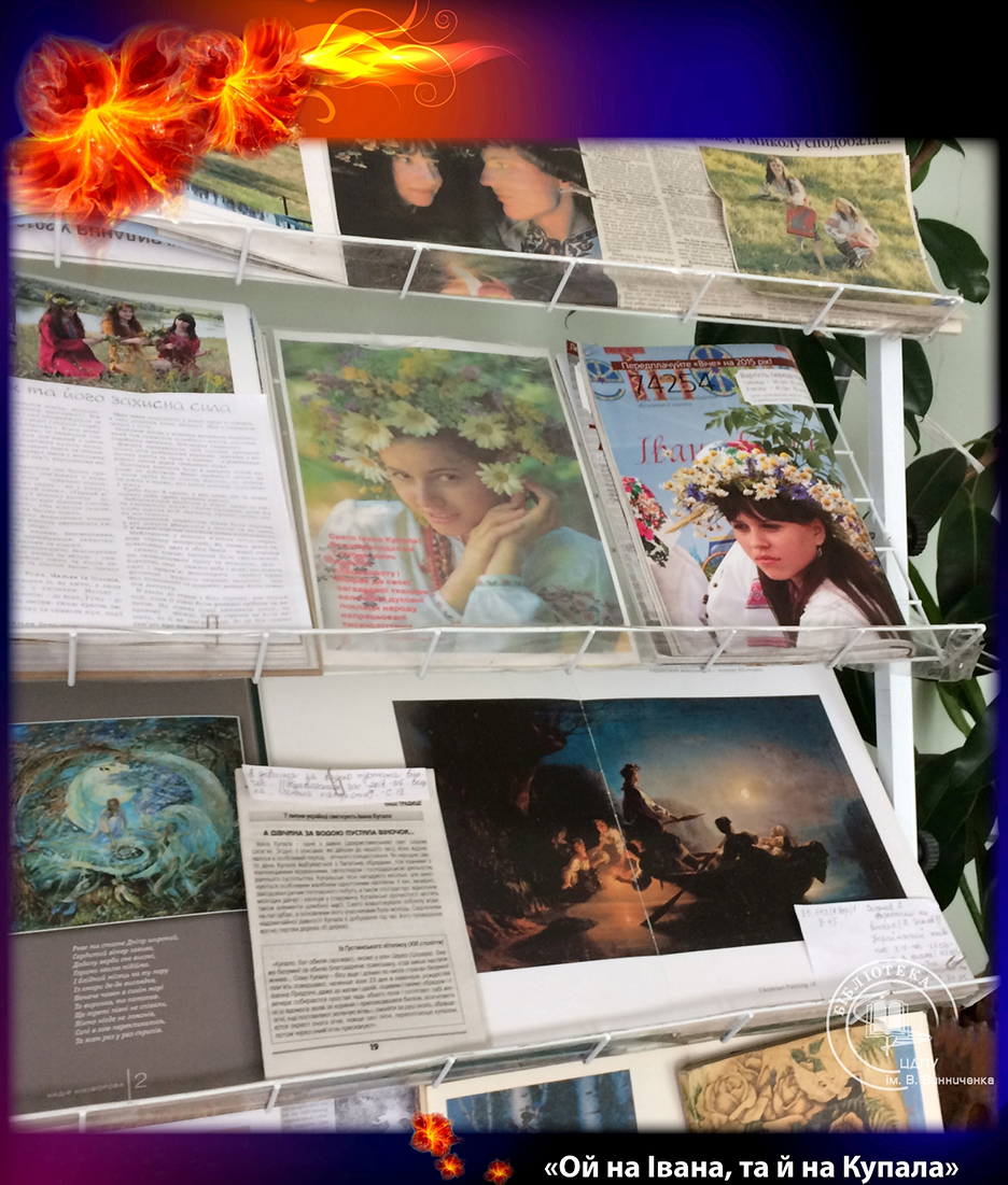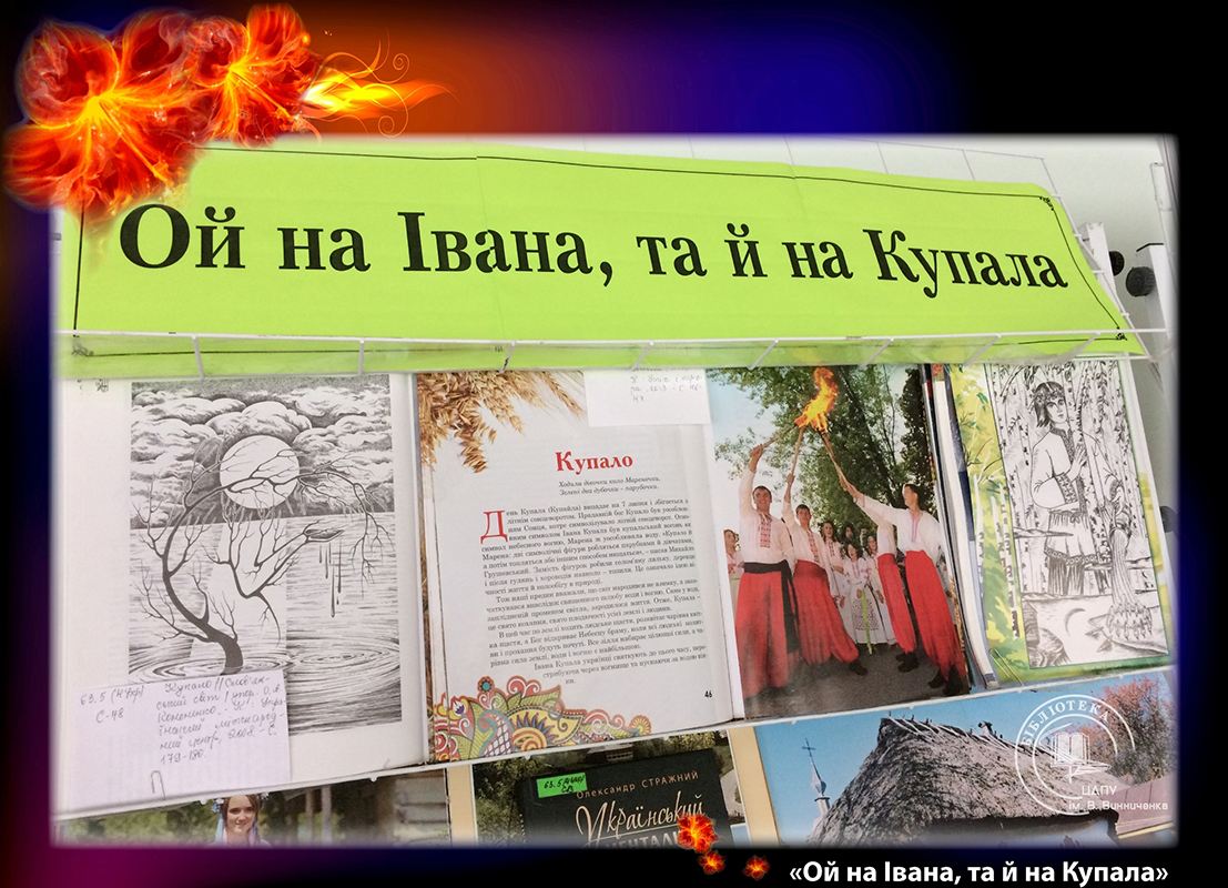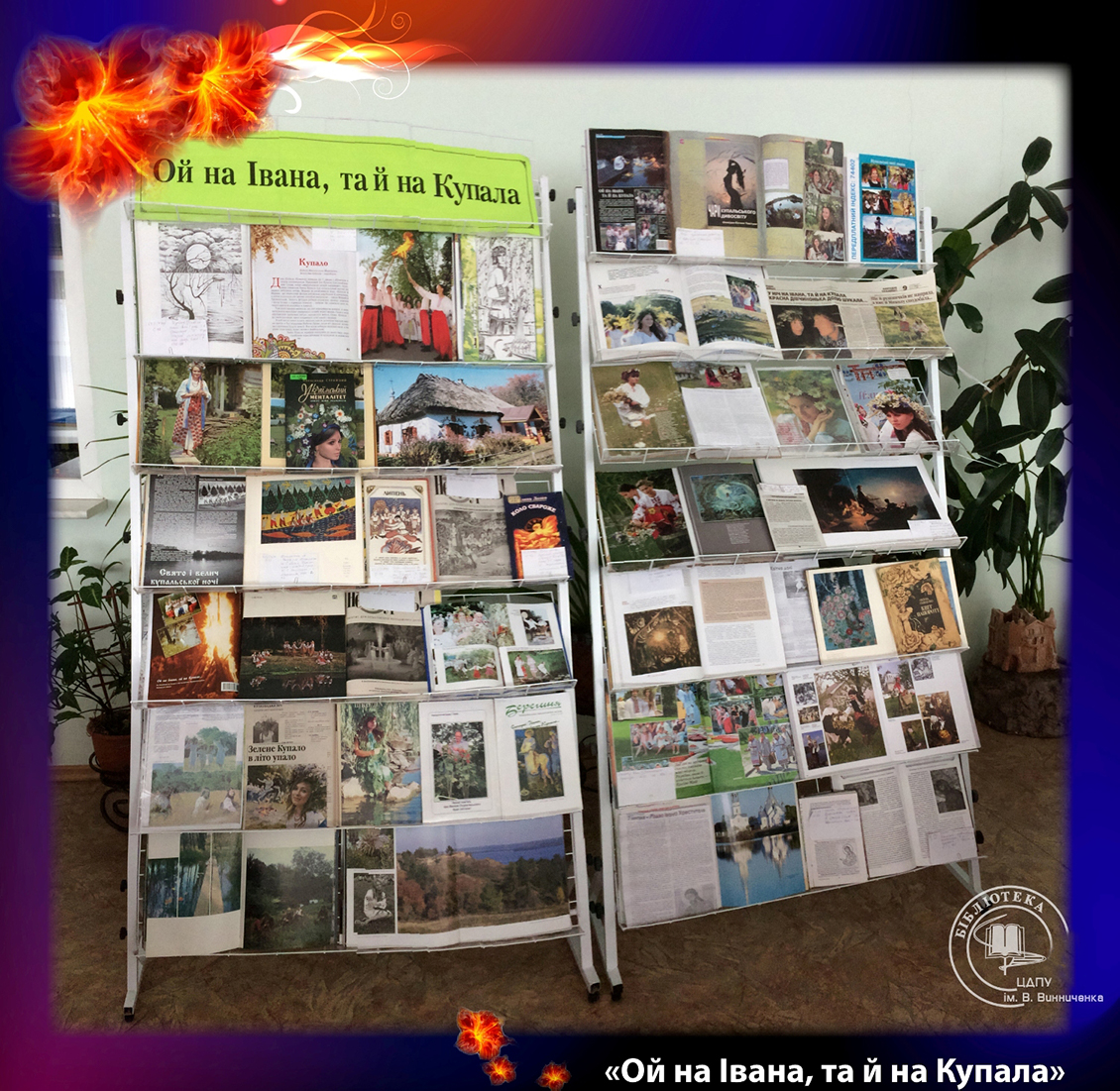 До Дня Івана Купала (7 липня) універсальний читальний зал приурочує виставку «Ой на Івана, та й на Купала». Усіх бажаючих запрошуємо поринути в чарівний світ магії та дивовижних дійств.