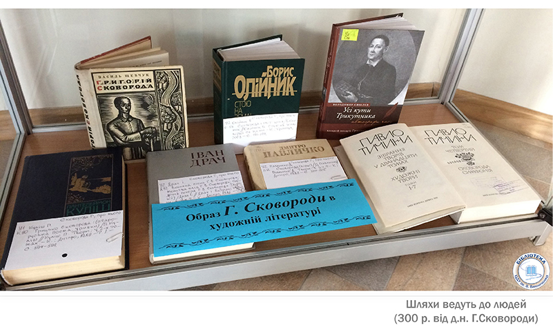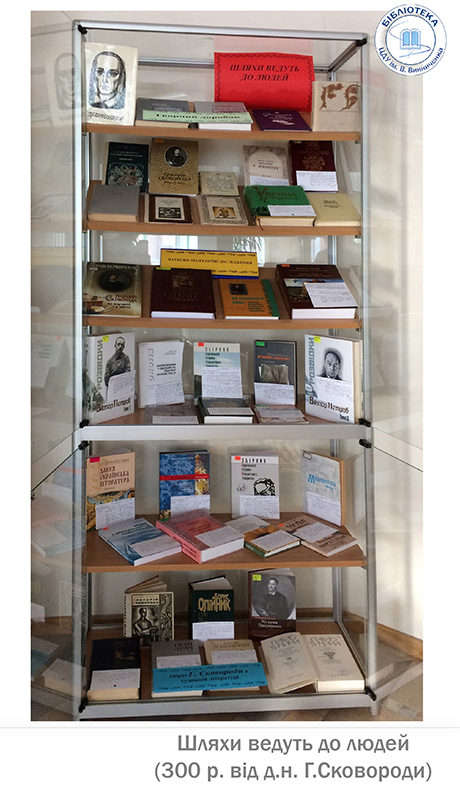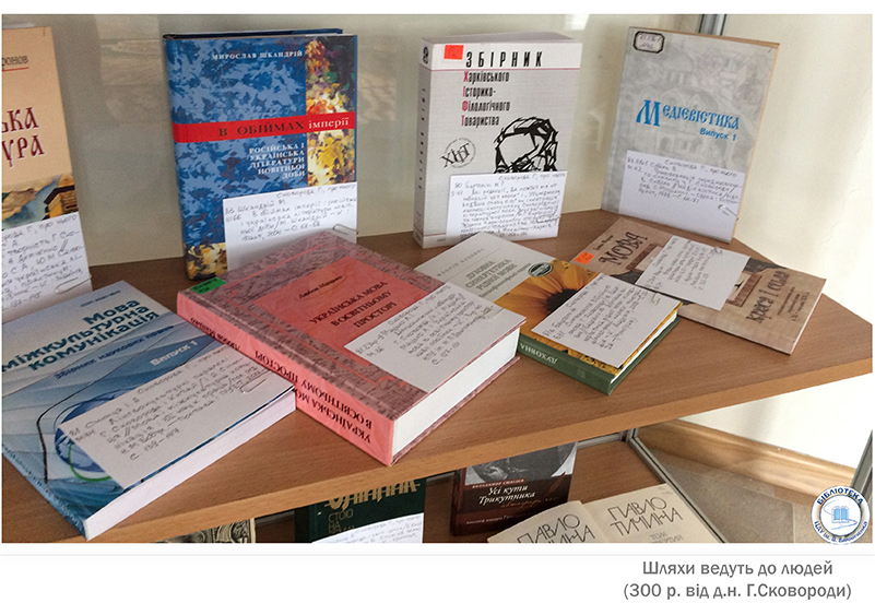 В читальному залі філологічних дисциплін до 300-річчя від дня народження цієї загадкової постаті, яка належить до найвидатніших виразників української ментальності ХVІІІ століття, розгорнута книжкова виставка.