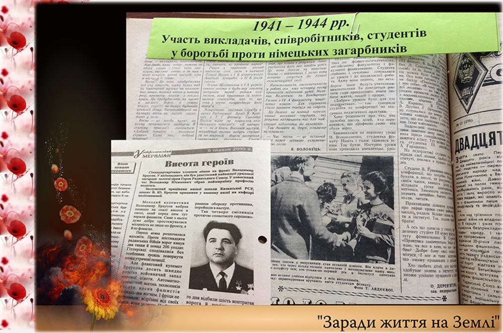 Четвертий розділ "Участь викладачів, співробітників, студентів університету у боротьбі проти німецьких загарбників", що розповідає про внесок представників університетської спільноти в боротьбу проти нацизму.