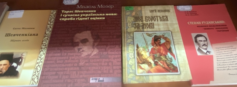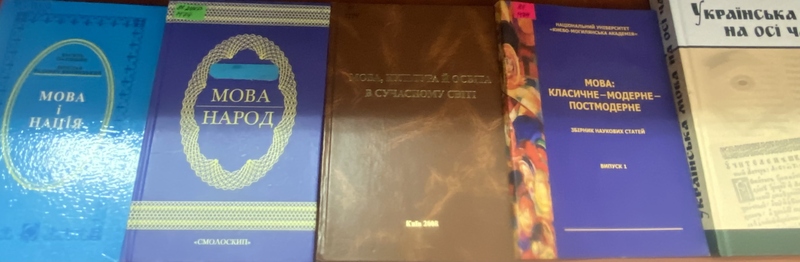 Виставка містить книги, які розповідають про сучасну українську мову у різних напрямках її використання, політичне сьогодення української мови, українська мова на осі часу, та українські класики про боротьбу за українську мову.