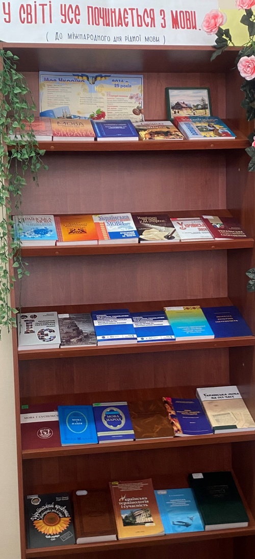 Саме тому, бібліотекар відділу мови та мовознавства, розгорнула книжкову виставку "У світі усе починається з мови" до дня рідної мови. Виставка розкриває перед читачами бібліотеки історію походження української мови, непростий шлях розвитку та всю її красу у сьогоденні.