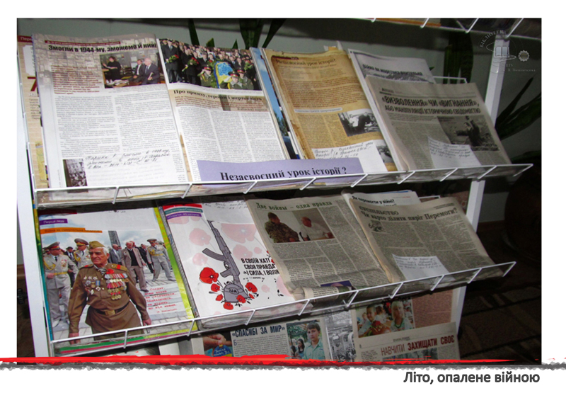 22 червня 1941 року гітлерівські війська підступно і без попередження розпочали війну. Цей день став для України Днем глибокої скорботи. Бібліотекарі універсального читального залу підготували виставку «Літо, опалене війною», яка розкриває увесь трагізм, що пережили українці.