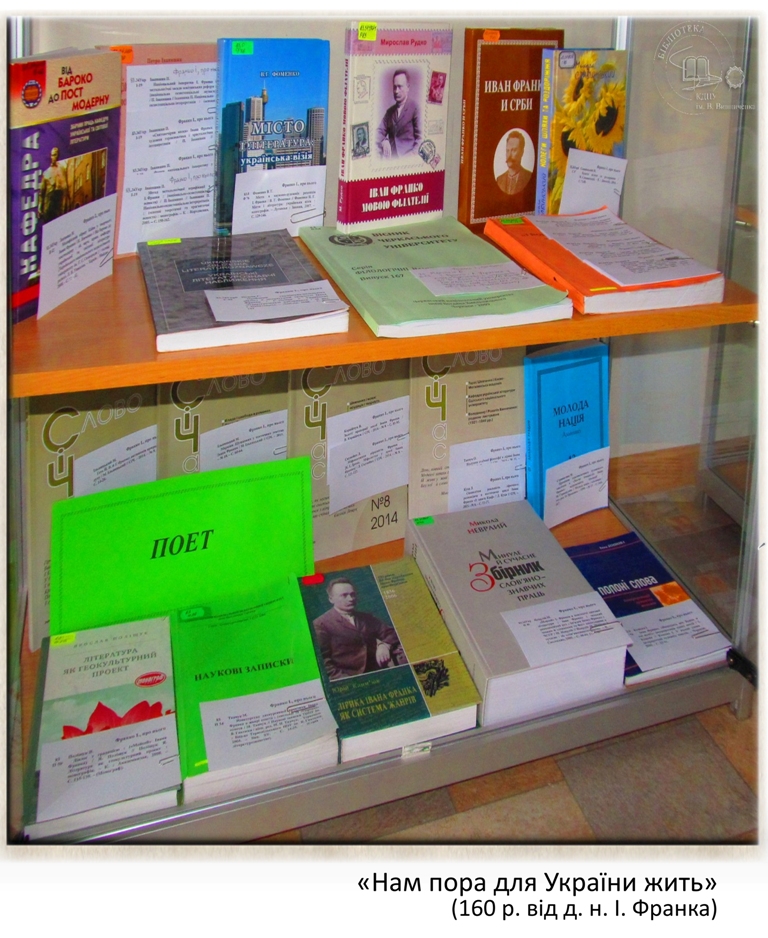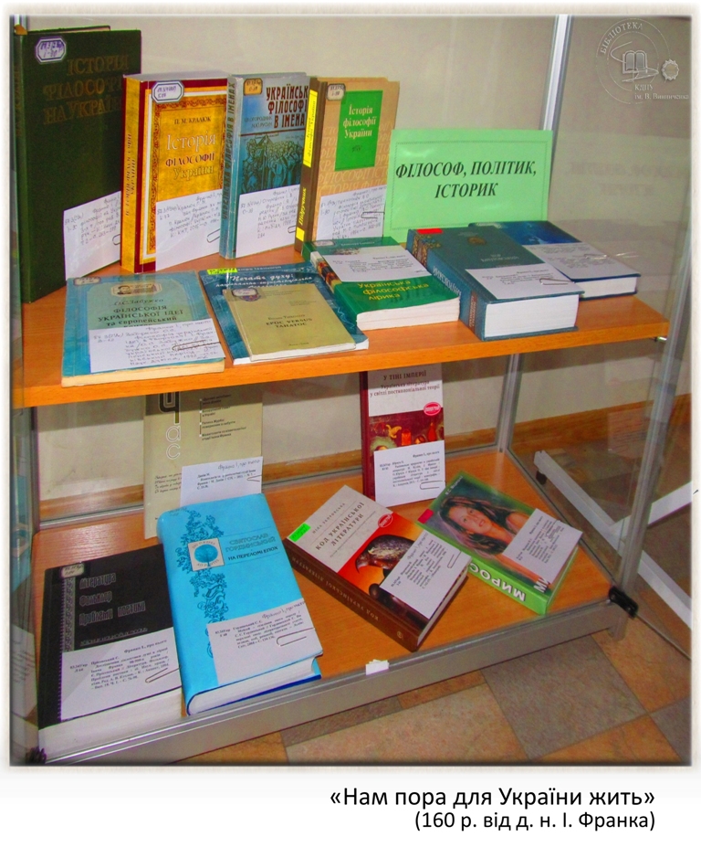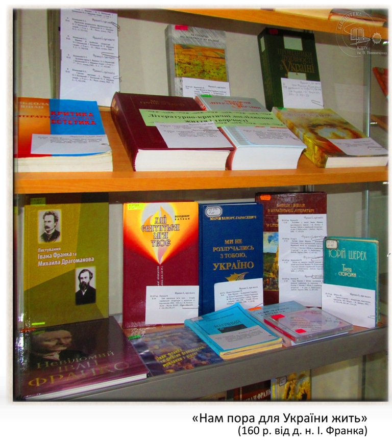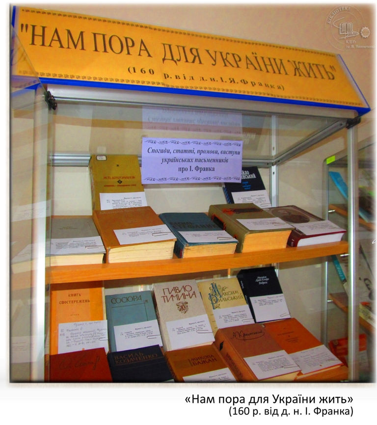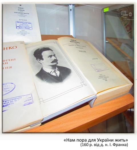 Минають часи, змінюються покоління, а створені Іваном Франком образи і сьогодні здатні хвилювати душі читачів та служити джерелом вічного натхнення. До 160-річчя від дня народження найвизначнішого представника української класичної літератури, самовідданого громадського діяча, глибокого мислителя і вченого з 27 серпня в читальному залі для науковців бібліотеки університету експонується ювілейна книжкова виставка.