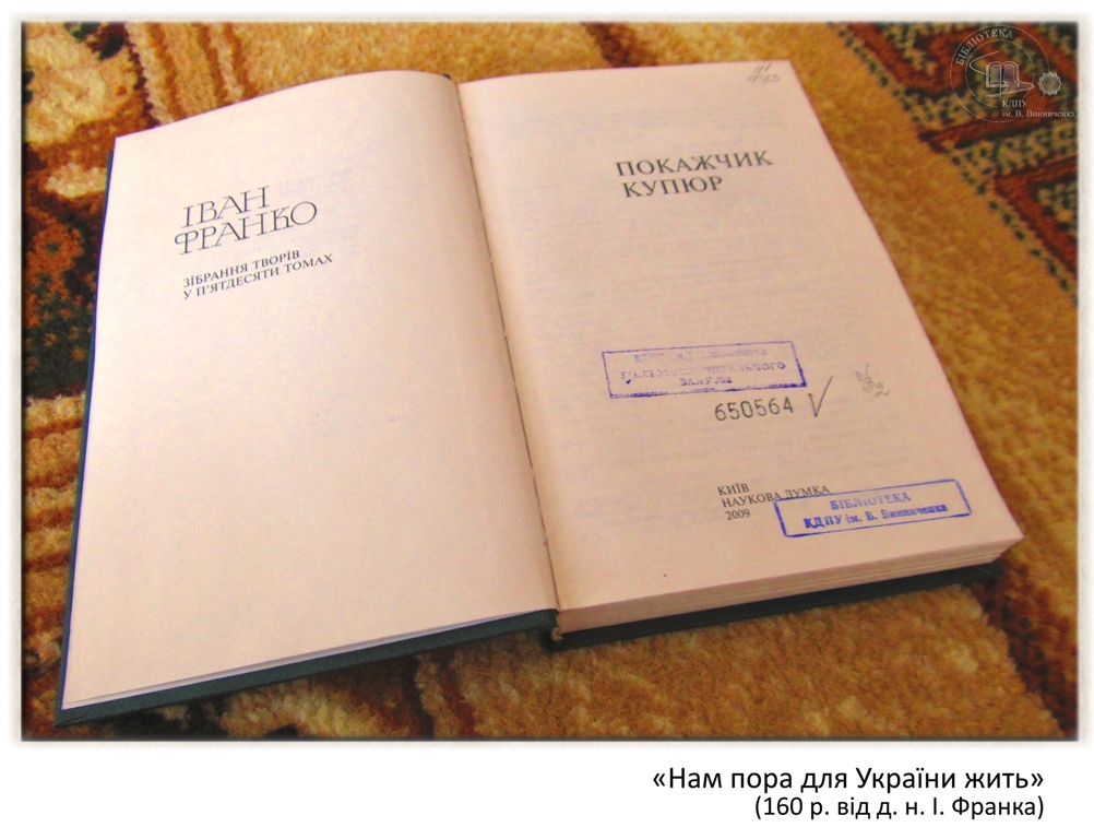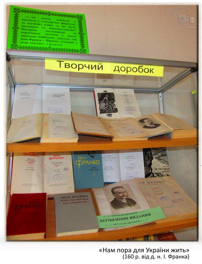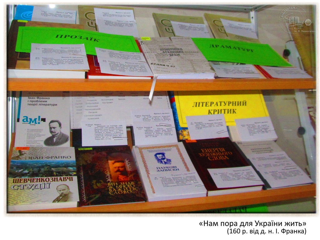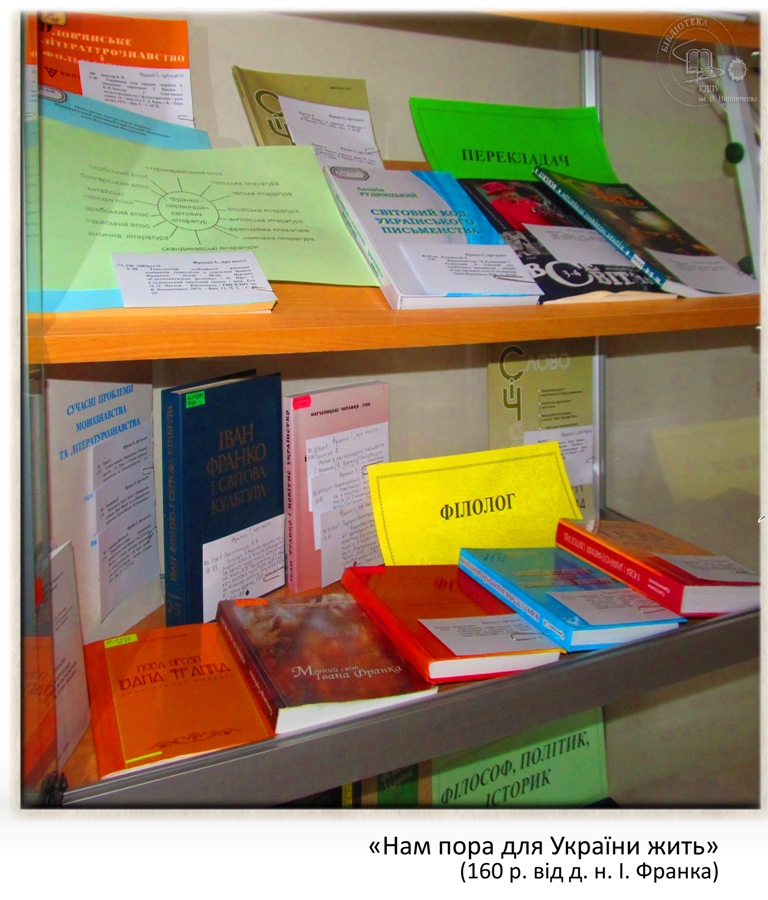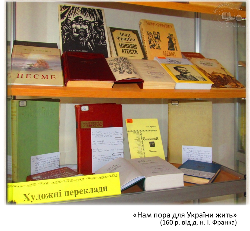 Минають часи, змінюються покоління, а створені Іваном Франком образи і сьогодні здатні хвилювати душі читачів та служити джерелом вічного натхнення. До 160-річчя від дня народження найвизначнішого представника української класичної літератури, самовідданого громадського діяча, глибокого мислителя і вченого з 27 серпня в читальному залі для науковців бібліотеки університету експонується ювілейна книжкова виставка.