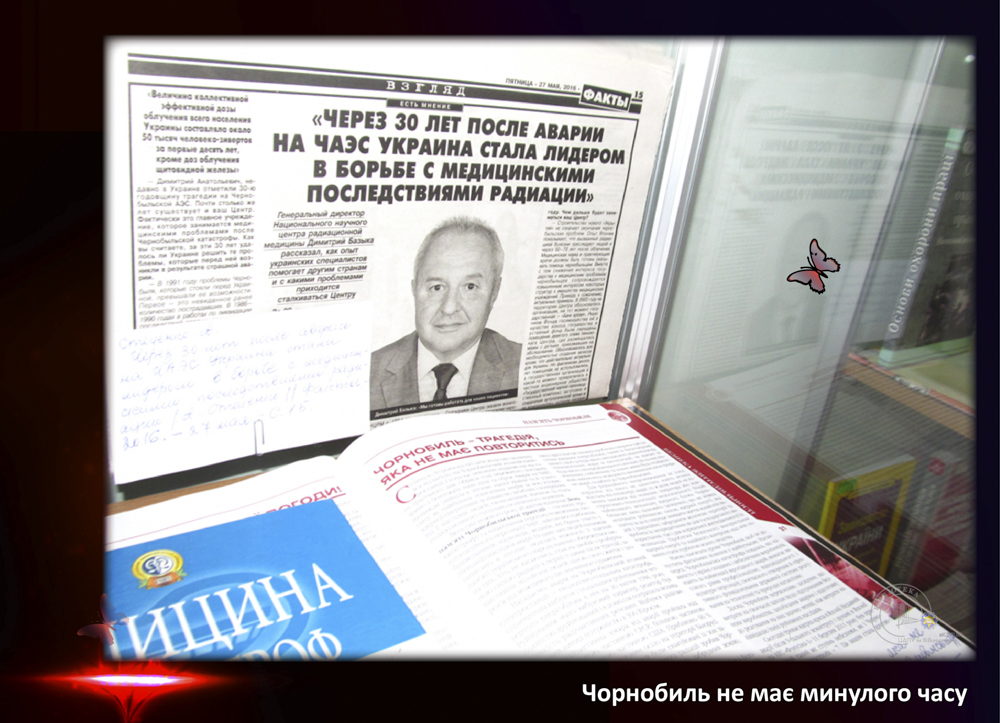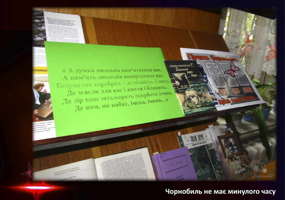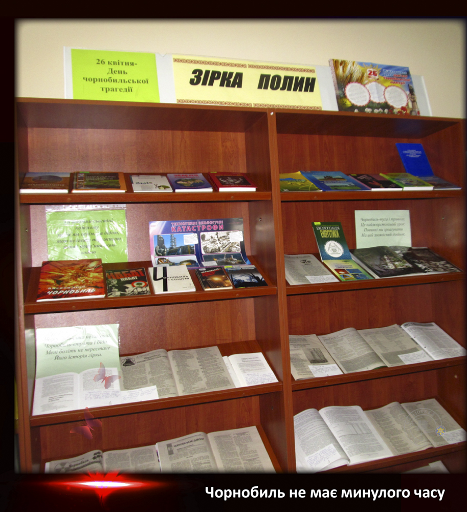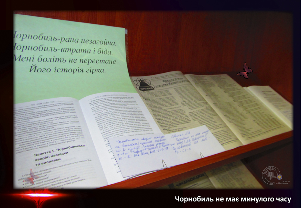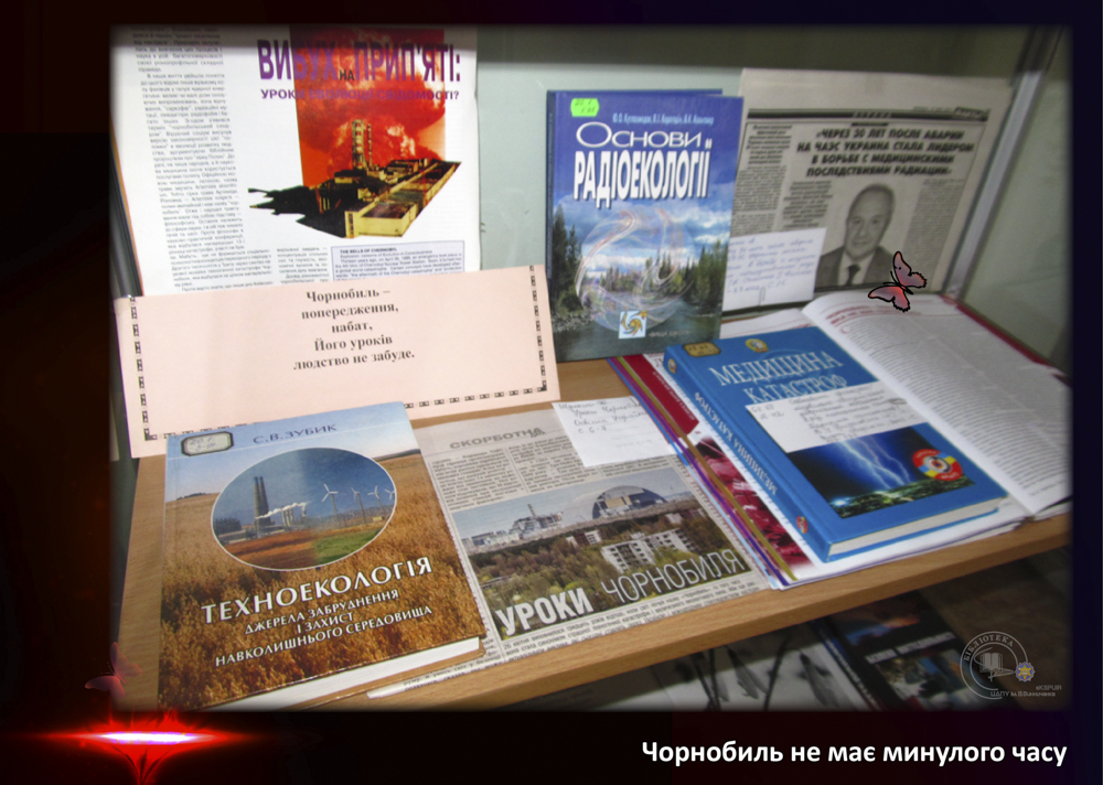 До Чорнобильської трагедії універсальний читальний зал експонує виставку «Чорнобиль не має минулого часу».