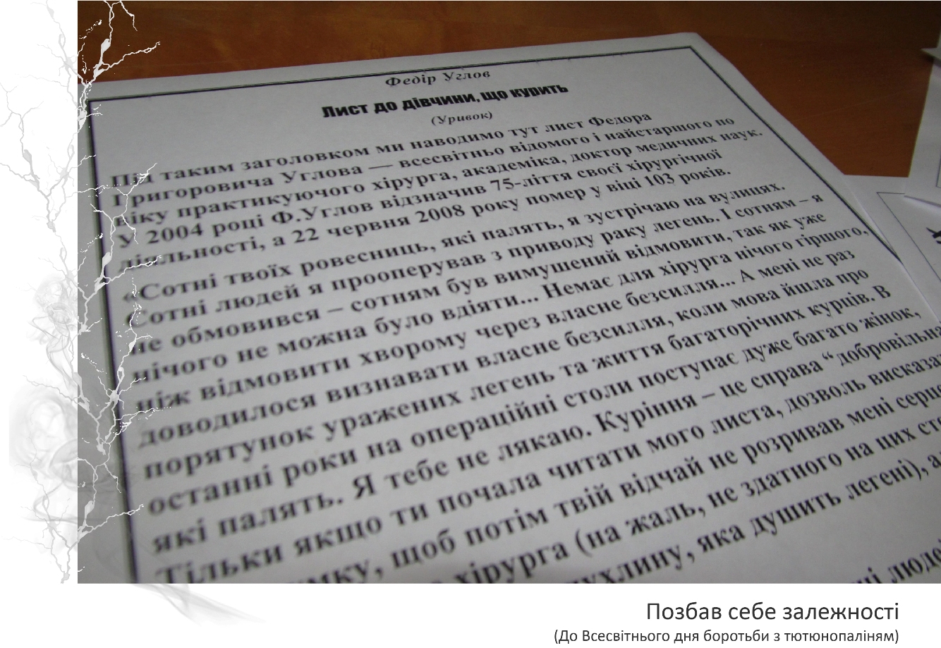 Позбав себе залежності (До Всесвітнього дня боротьби з тютюнопаліням)