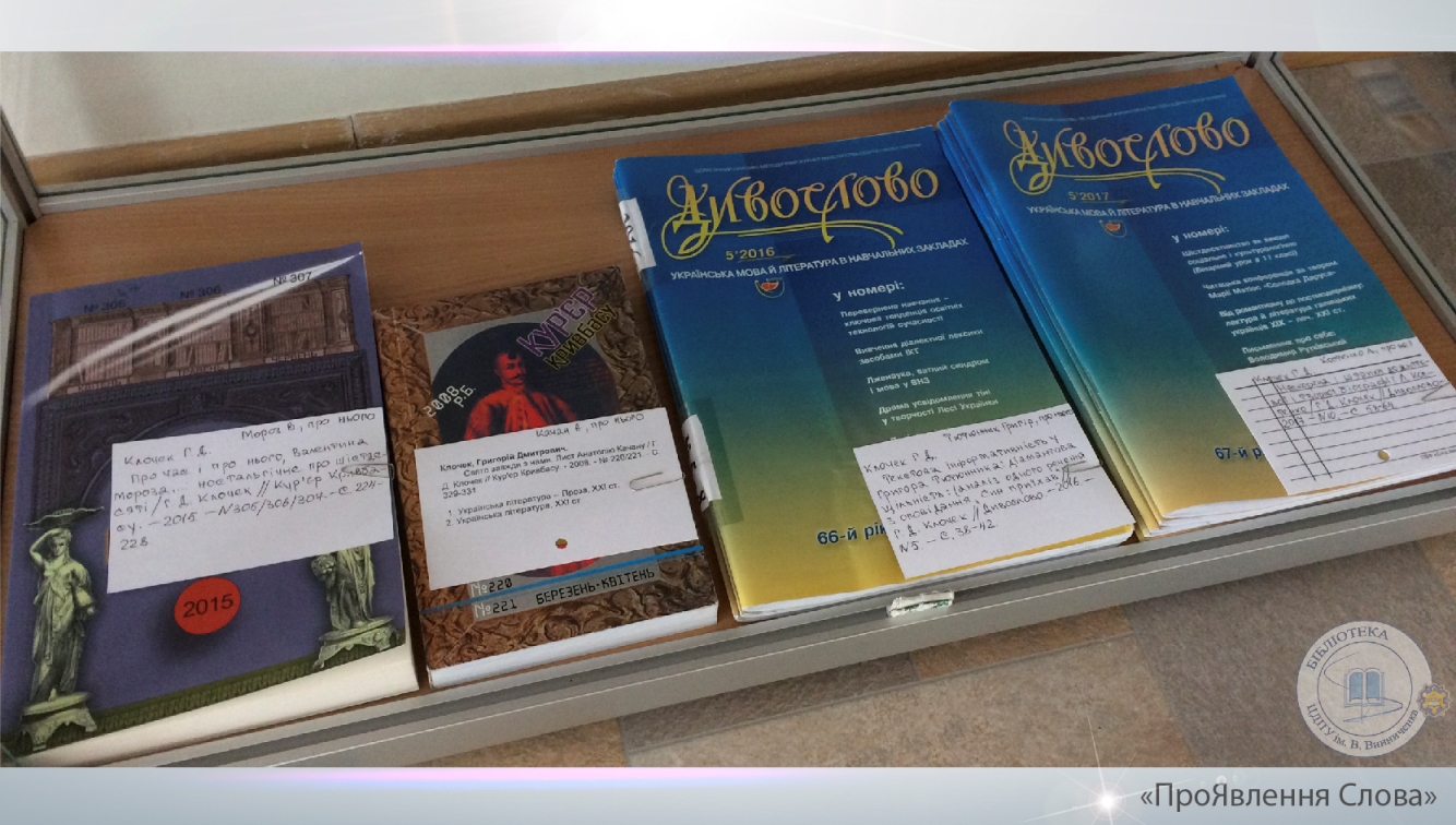 До ювілею доктора філологічних наук, професора, академіка АН ВШ України, члена Спілки письменників України, лауреата Фонду Тараса Шевченка 2017 року Григорія Дмитровича Клочека в читальному залі для науковців бібліотеки університету з 1 березня розгорнута виставка-вшанування.