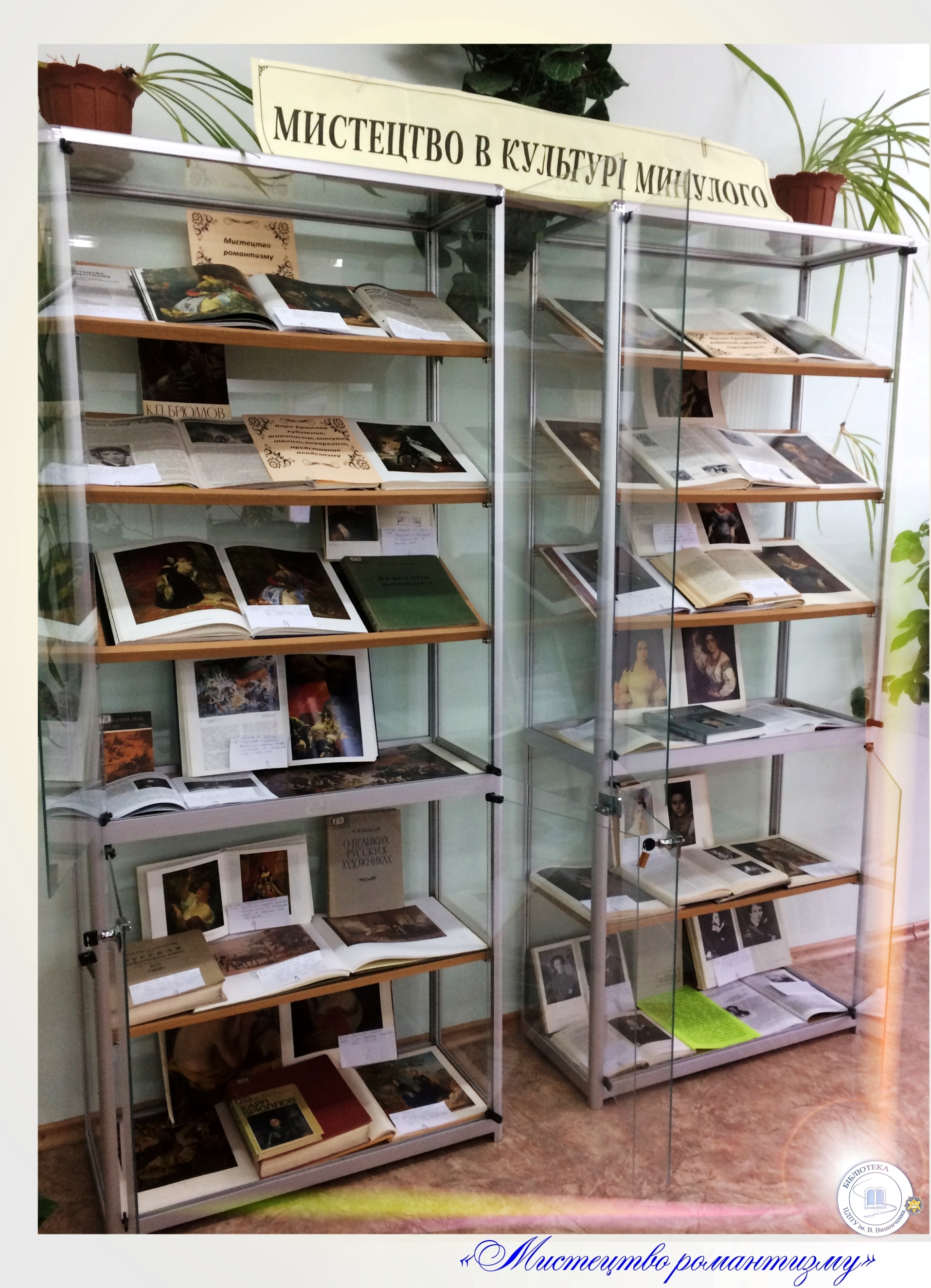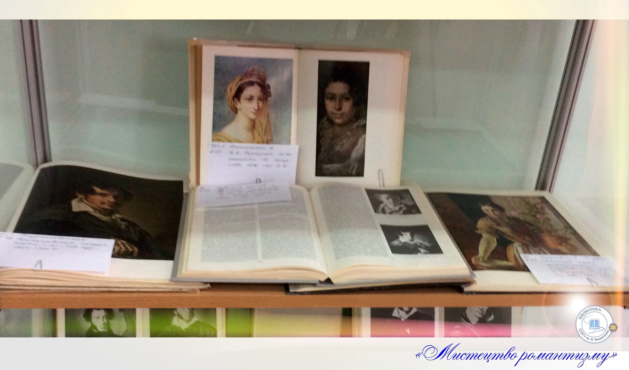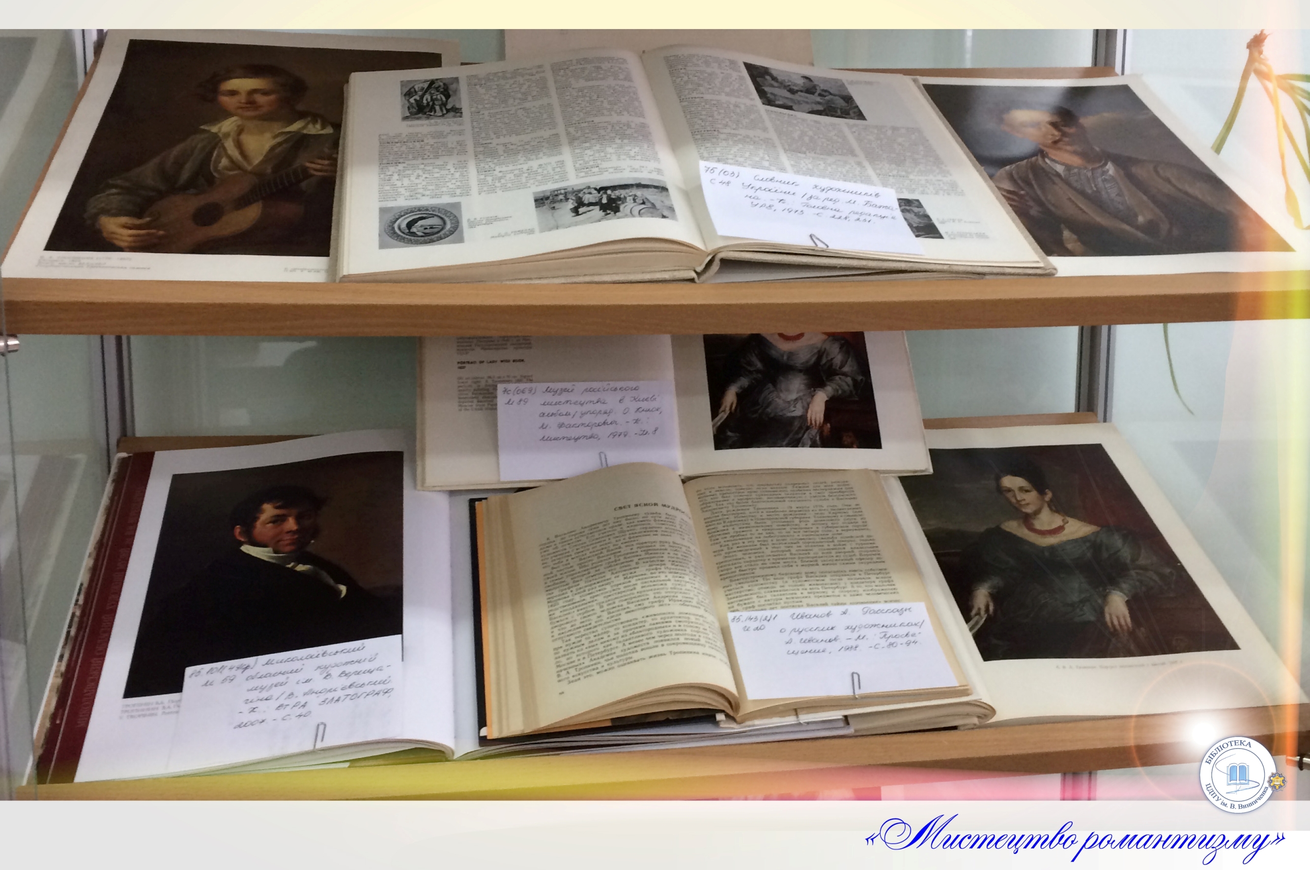 В межах циклу «Мистецтво в культурі минулого» універсальний читальний зал підготував виставку «Мистецтво романтизму». Цьому напрямку властиве художнє мислення, яке захоплює своєю незвичайністю, таємничістю, казковістю. Художників вабили яскраві, рідкісні, надзвичайні явища, а також образи фантастичного характеру. У мистецтві романтизму велику роль відіграє гостре індивідуальне сприйняття і переживання. З художньою спадщиною видатних митців ви можете ознайомитись, завітавши до універсального читального залу.