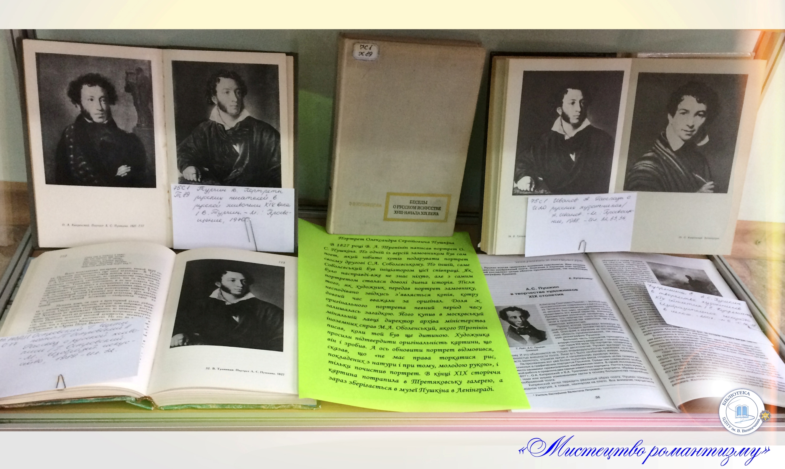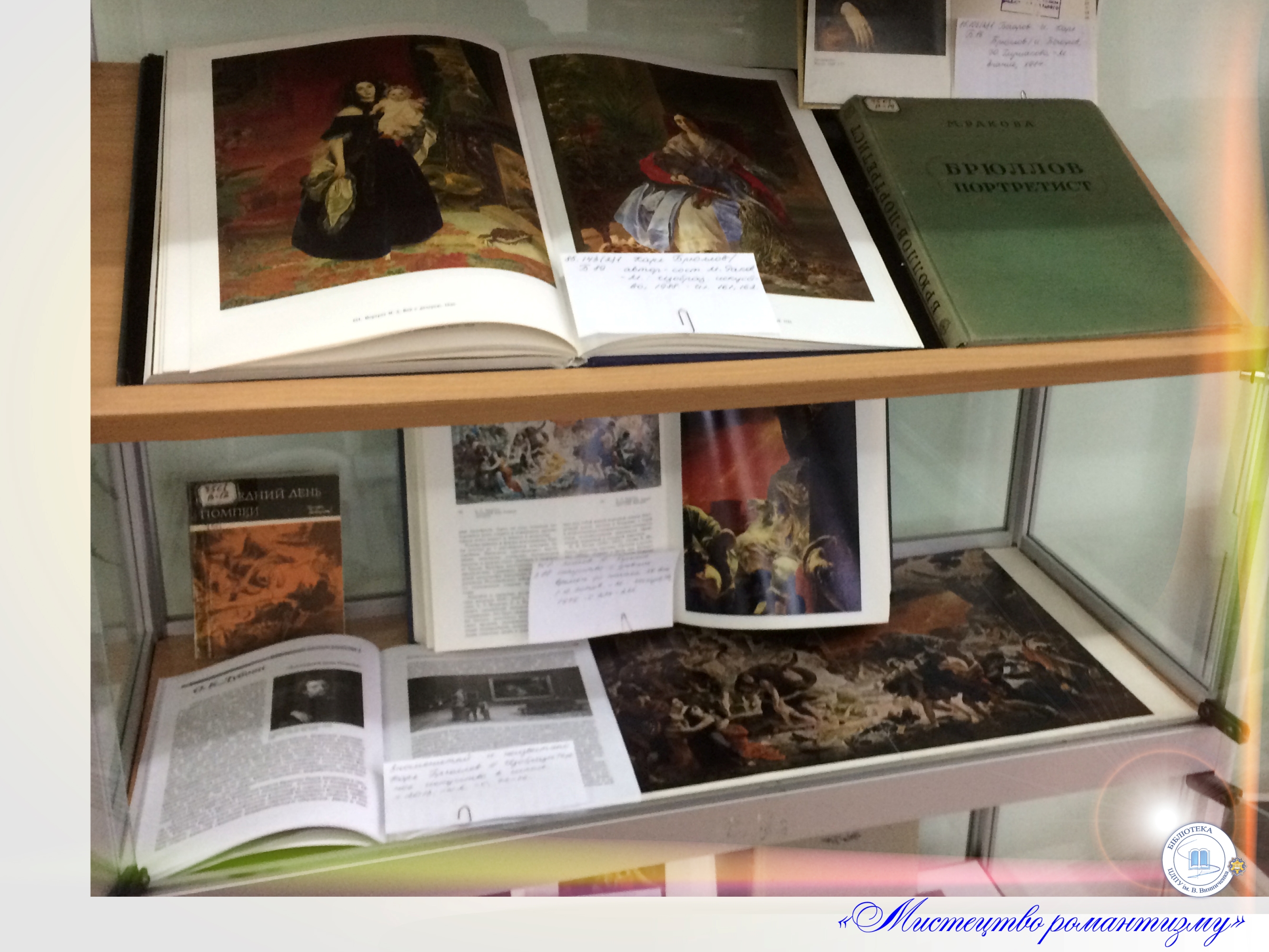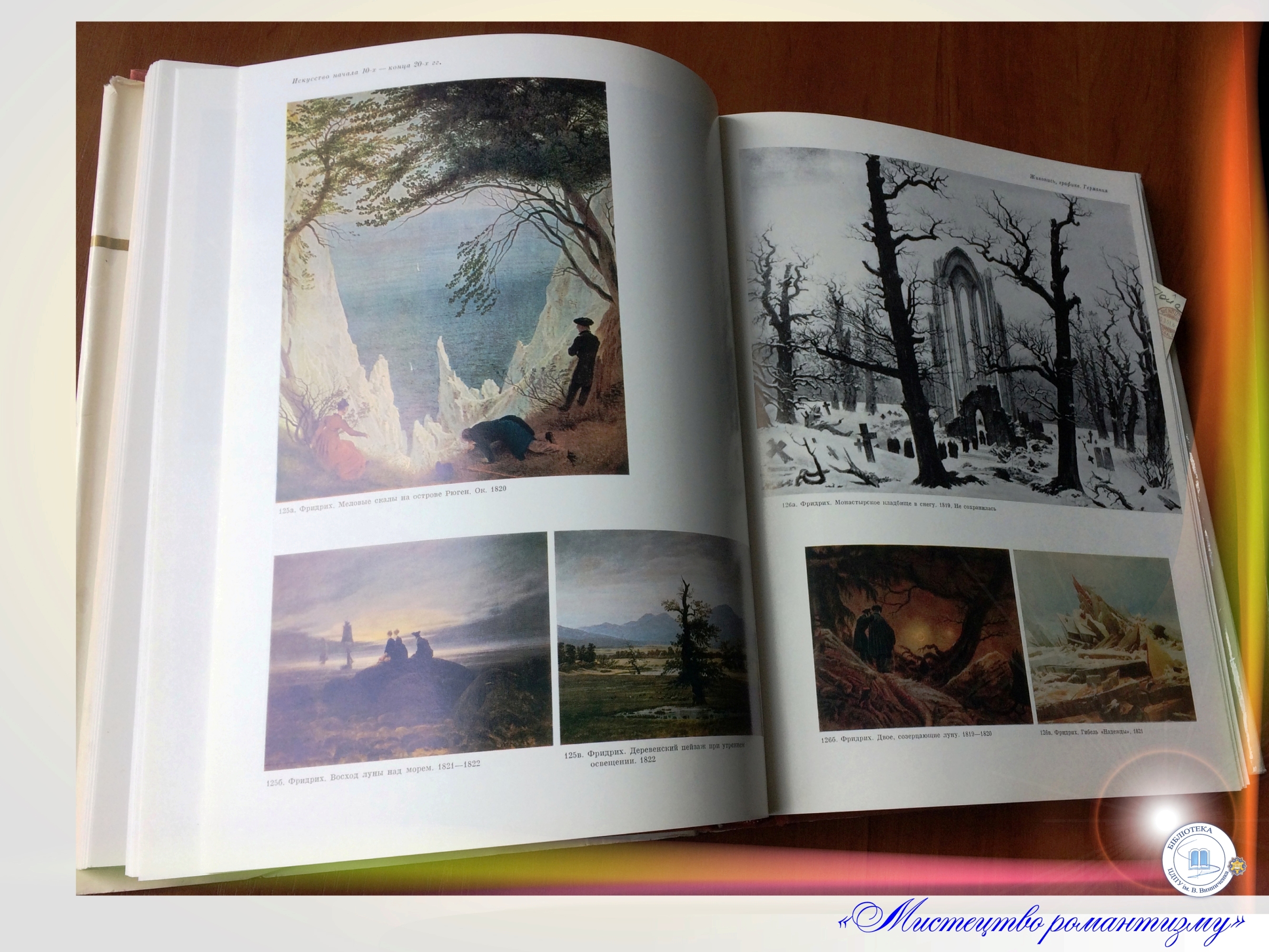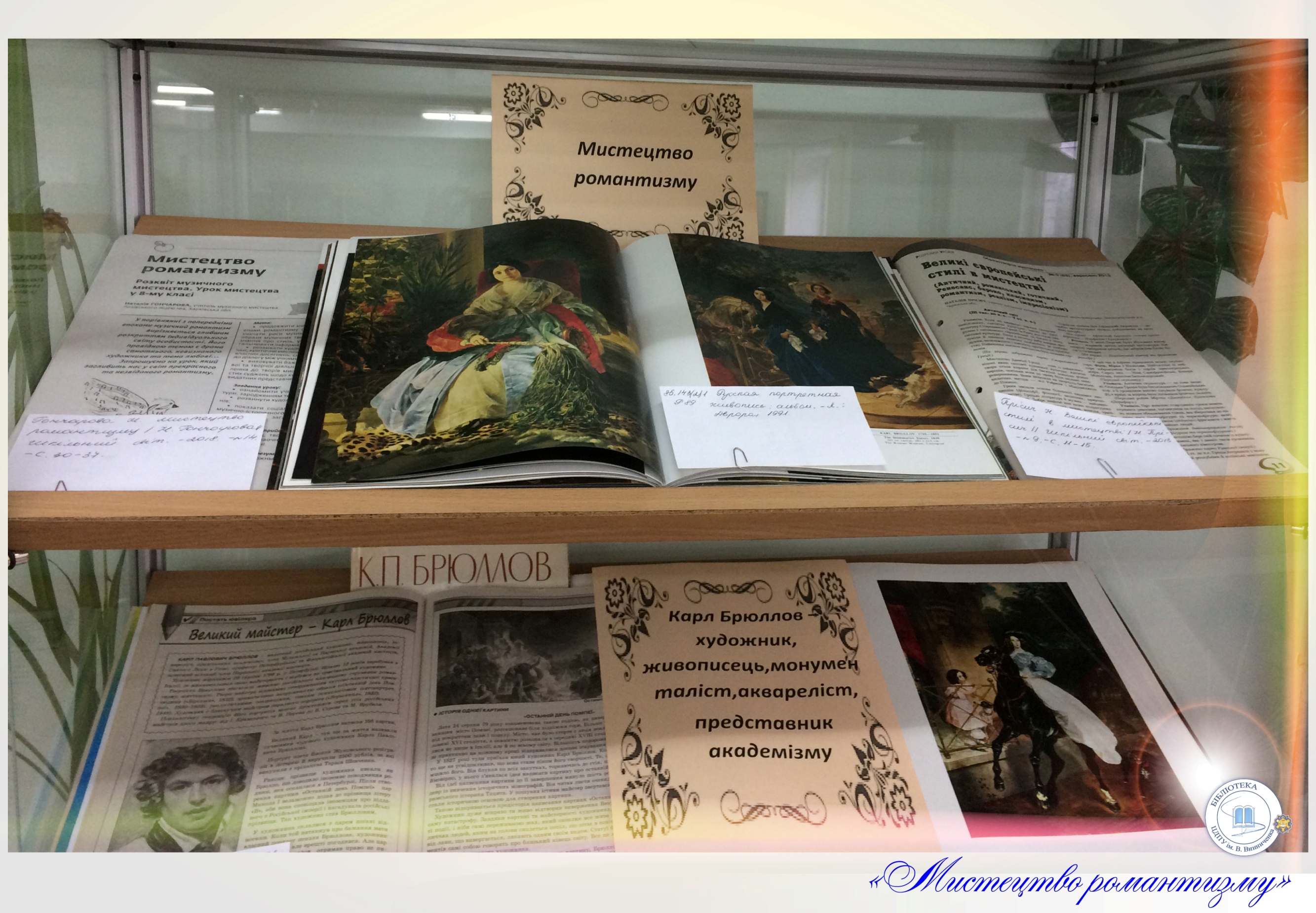 В межах циклу «Мистецтво в культурі минулого» універсальний читальний зал підготував виставку «Мистецтво романтизму». Цьому напрямку властиве художнє мислення, яке захоплює своєю незвичайністю, таємничістю, казковістю. Художників вабили яскраві, рідкісні, надзвичайні явища, а також образи фантастичного характеру. У мистецтві романтизму велику роль відіграє гостре індивідуальне сприйняття і переживання. З художньою спадщиною видатних митців ви можете ознайомитись, завітавши до універсального читального залу.
