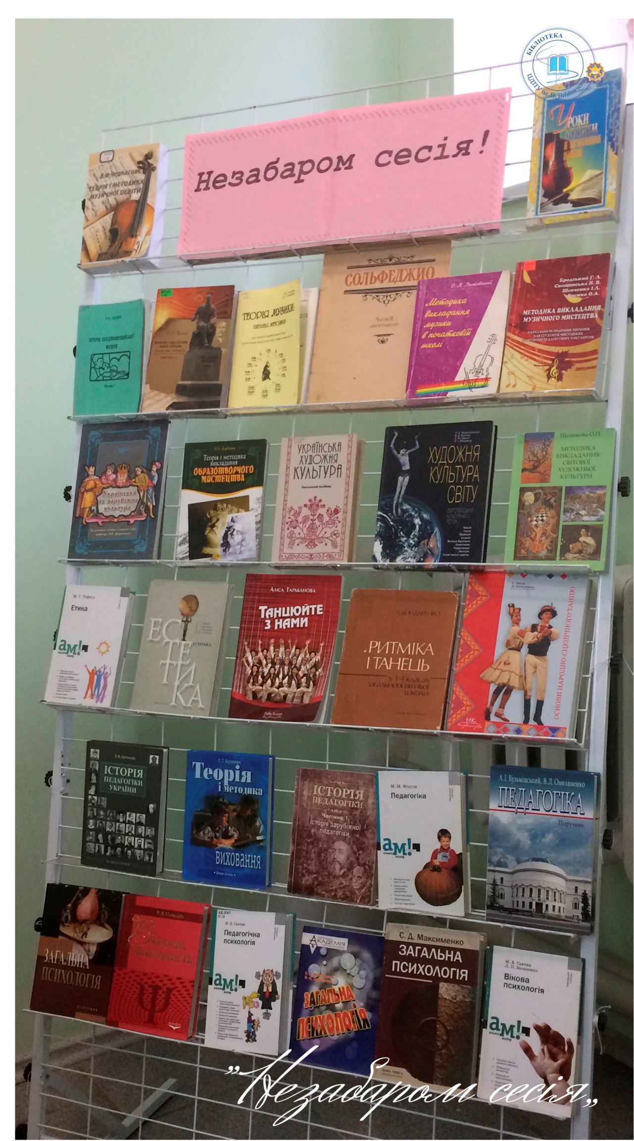 В період підготовки та під час літньої сесії на абонементі мистецького факультету пропонується підбірка методичної літератури. Відомо, що вдало підібрана і використана в роботі література, є запорукою успішного результату на екзаменах. Чекаємо всіх бажаючих поповнити і збагатити свої знання!