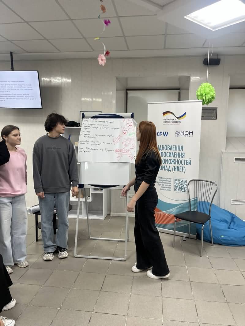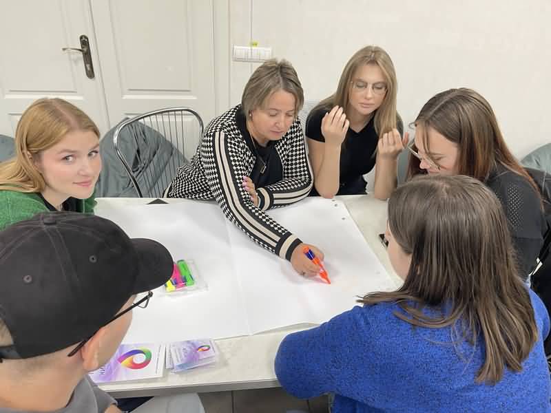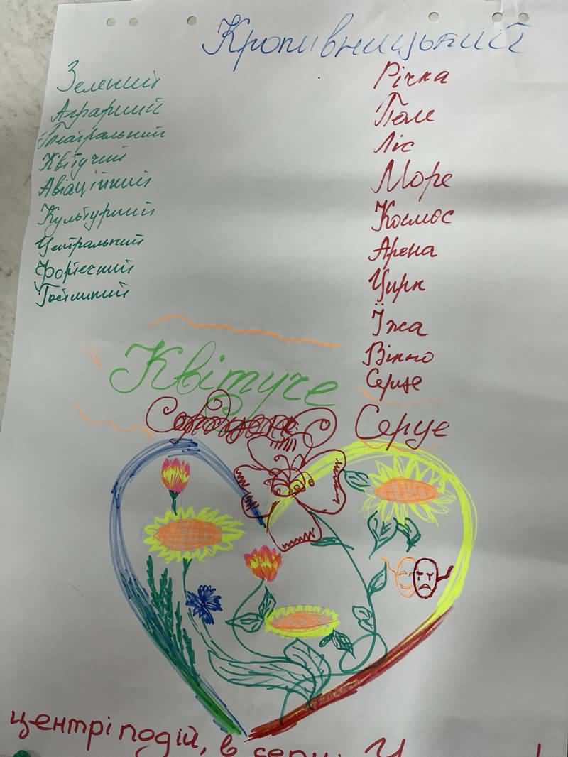 У першому блоці зустрічі студенти працювали в командах, малювали візуальні карти ідентичності міста, добирали символи, кольори та метафори. Кожна група з особливим натхненням презентувала результати та обговорювала, як змінилося сприйняття образу Кропивницького після початку війни.