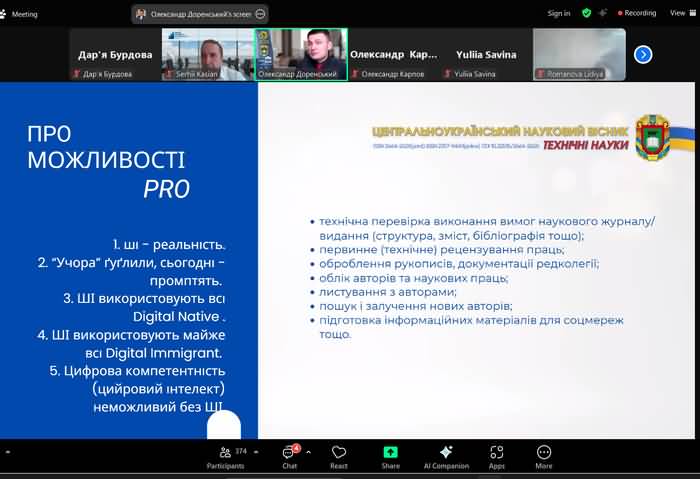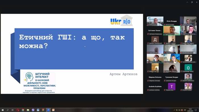 Участь здобувачів ВО та НПП ЦДУ імені Володимира Винниченка у Всеукраїнського вебінару «Штучний інтелект в науковій діяльності: нові можливості, перспективи, проблеми»