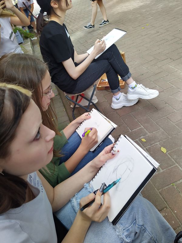Майбутні митці з Образотворчого мистецтва привертали увагу не лише виконуючи пленерні завдання, а й влаштувавши портретні замальовки перехожих.