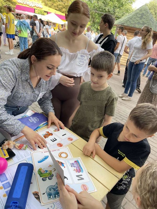 Жвавий інтерес викликали майбутні Спеціальні (корекційні) педагоги, які не лише провели активності з дітьми, а й облаштували презентацію логопедичних інструментів й вправ для постановки звуків, висвітлювали характерні маркери для виявлення особливостей порушення норм розвитку дітей різного віку та надавали рекомендації щодо способів пошуку допомоги таким дітям.