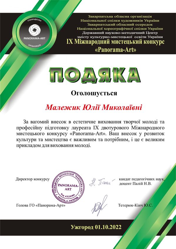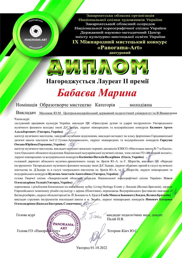 Студентка факультету педагогіки, психології та мистецтв здобула призове місце у ІХ Міжнародному конкурсі «Panorama-Art»
