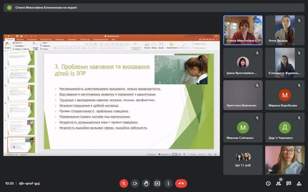 18 жовтня 2022 року на факультеті педагогіки, психології та мистецтв відбулася відкрита лекція на тему «Психологія навчання та виховання дітей із затримкою психічного розвитку (ЗПР)». Її провела старший викладач кафедри психології та соціальної роботи, кандидат психологічних наук Близнюкова Олена Миколаївна. На лекції були присутні студенти спеціальності 016.02 «Спеціальна освіта», викладачі кафедри.