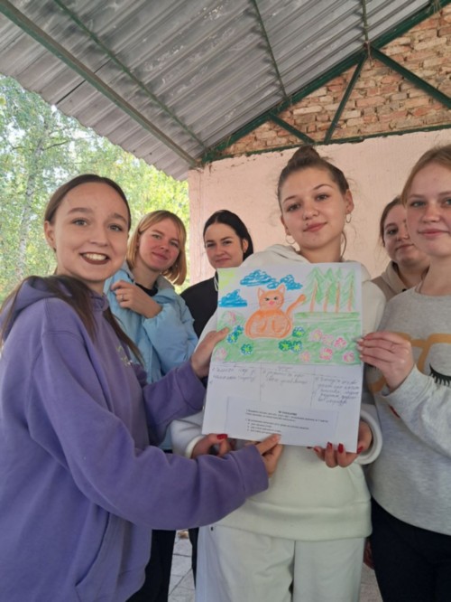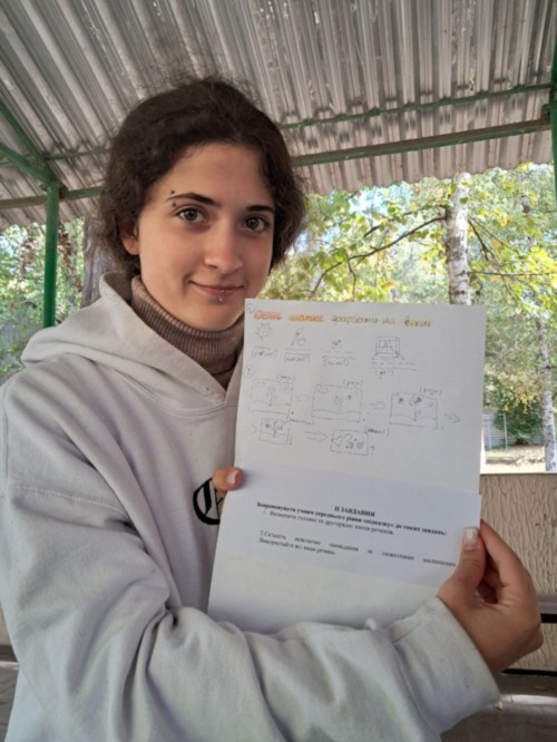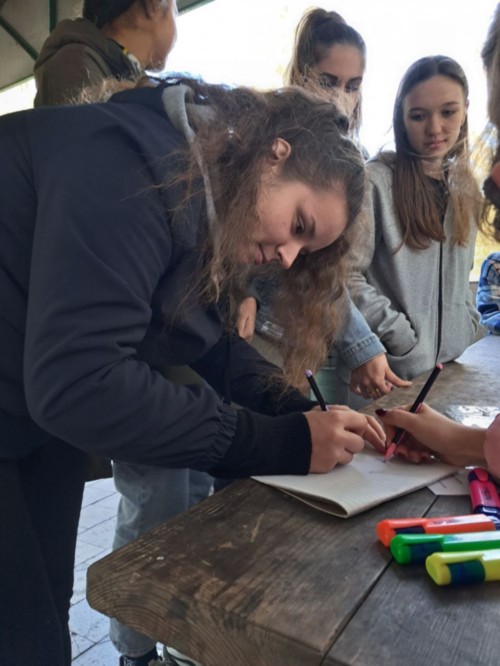 Спробували бути в ролі учнів імітуючи диференційований розподіл школярів на групи для виконання творчих завдань на свіжому повітрі.