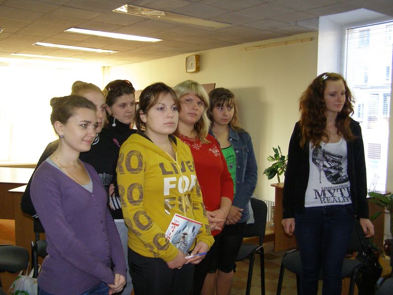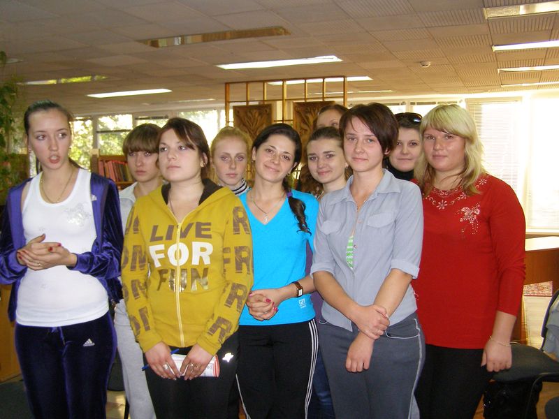 26 вересня 2011 року у приміщенні обласної універсальної наукової бібліотеки ім. Д. І. Чижевського проведено тренінг з питань екологічного виховання молоді зі студентами гр. 21 психолого-педагогічного факультету. Тренінг вели Мірная Р. В., соціальний експерт, та Клименченко О. А., головний спеціаліст Кіровоградського міського центру соціальних служб для сім’ї, дітей та молоді. Студентам були запропоновані теми для обговорення, а саме: місце та роль людини у природному середовищі; глобалізація технічного прогресу та диференціація соціального розподілу; масштаби екологічної кризи та особиста відповідальність кожної людини. Студенти брали активну участь у тренінгових вправах та висловили щиру вдячність тренерам за цікаву та змістовну роботу.