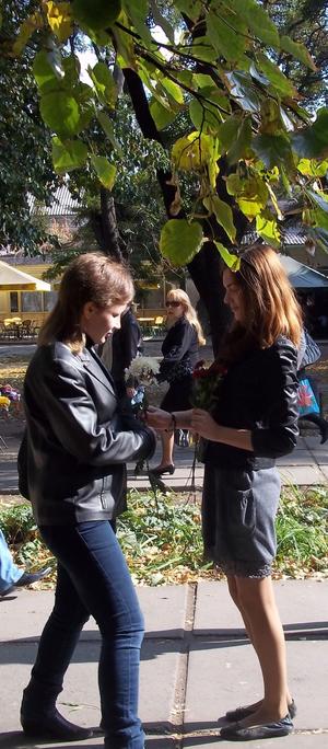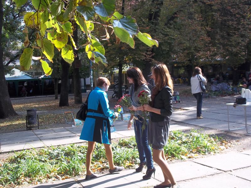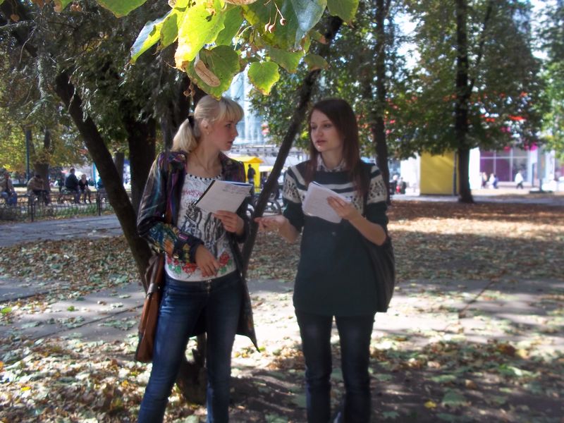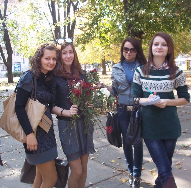 В останні сонячні дні осені студенти психолого-педагогічного факультету, а саме, майбутні психологи, вийшли на вулиці міста з метою привітати жителів міста з останнім днем осені задля створення гарного настрою. Вони дарували квіти перехожим та спостерігали за поведінковими актами людей, які приймали подарунок.