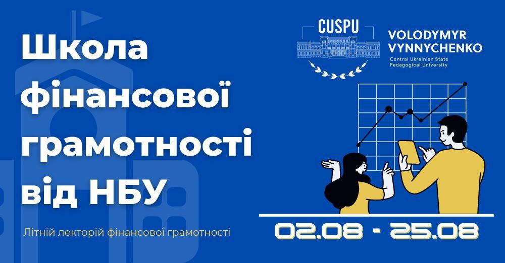 У рамках проведення просвтницьких заходів з фінансової грамотності для населення Національним банком України (лист від 19.07.2022 року №13-0005/4906 "Про проведення лекторію з фінансової грамотності "Талант" для вчителів), з 02 серпня 2022 року по 25 серпня 2022 року на власній онлайн платформі "Школа з фінансової грамотності "Талант" буде проведено літній лекторій з фінансової грамотності для вчителів закладів загальної середньої освіти, викладачів закладів професійної (професійно-технічної), фахової передвищої освіти, студентів закладів вищої освіти (вебінари).