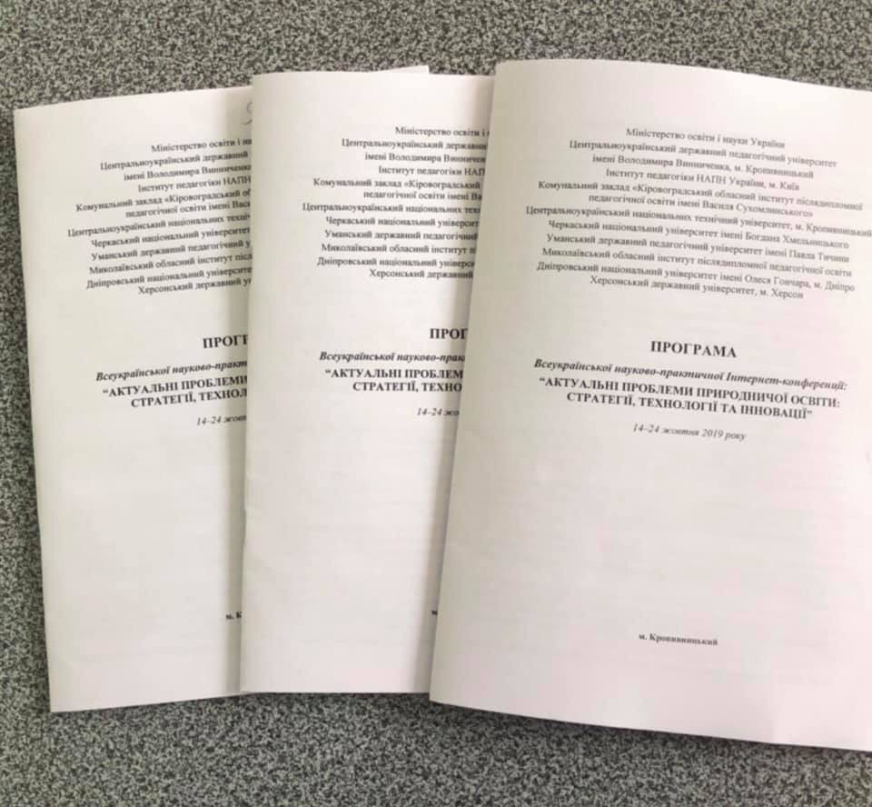 24 жовтня 2019 року на базі кафедри природничих наук та методик їхнього навчання природничо-географічного факультету, за підтримки онлайн-платформиЦентральноукраїнського державного педагогічного університету імені Володимира Винниченка завершила роботу І Всеукраїнська науково-практична інтернет-конференція «Актуальні проблеми природничої освіти: стратегії, технології та інновації»