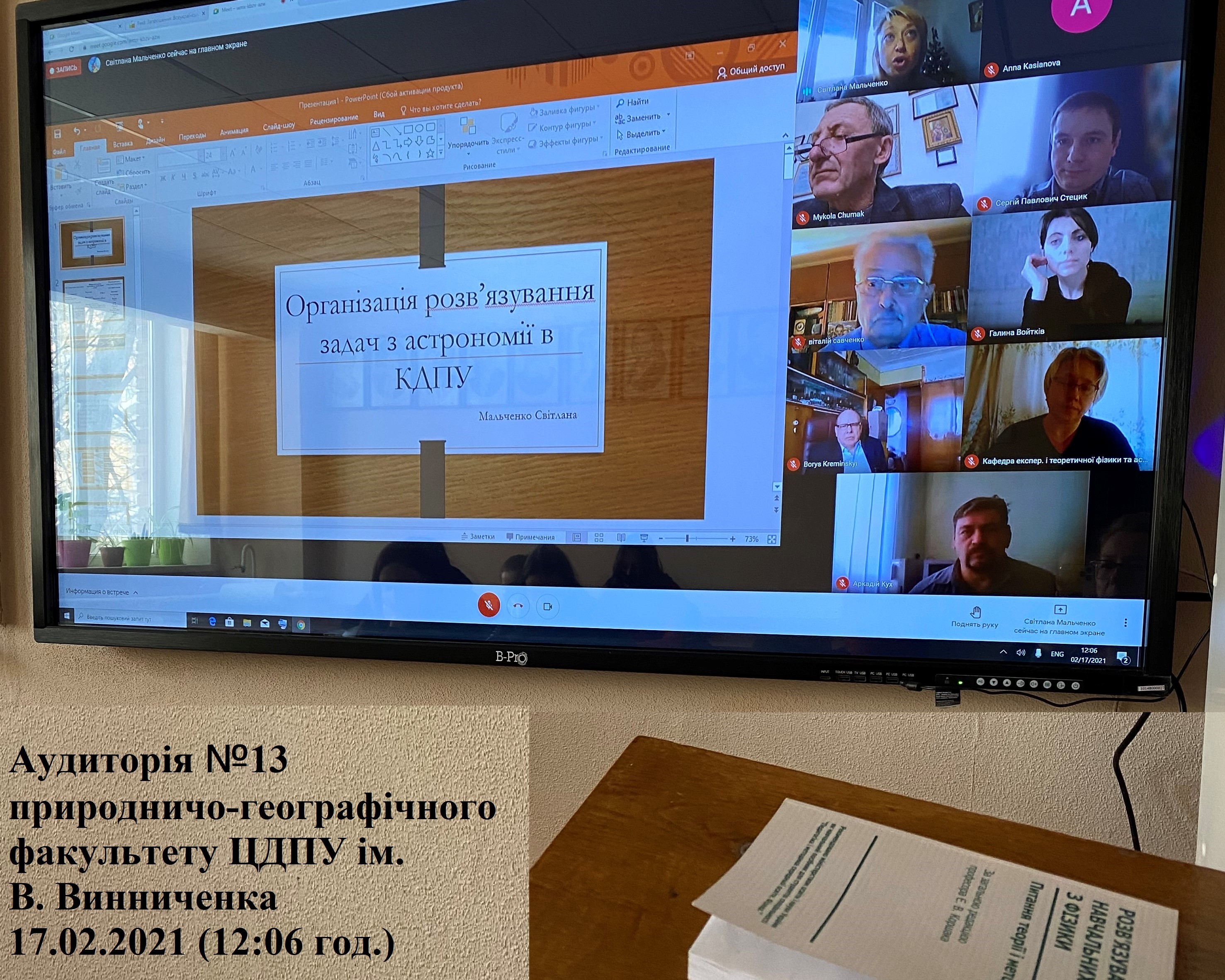 - «Організація розв’язування задач з астрономії в КДПУ» – МАЛЬЧЕНКО Світлана Леонідівна – кандидат фізико-математичних наук, доцент, доцент кафедри фізики та методики її навчання (Криворізький державний педагогічний університет);