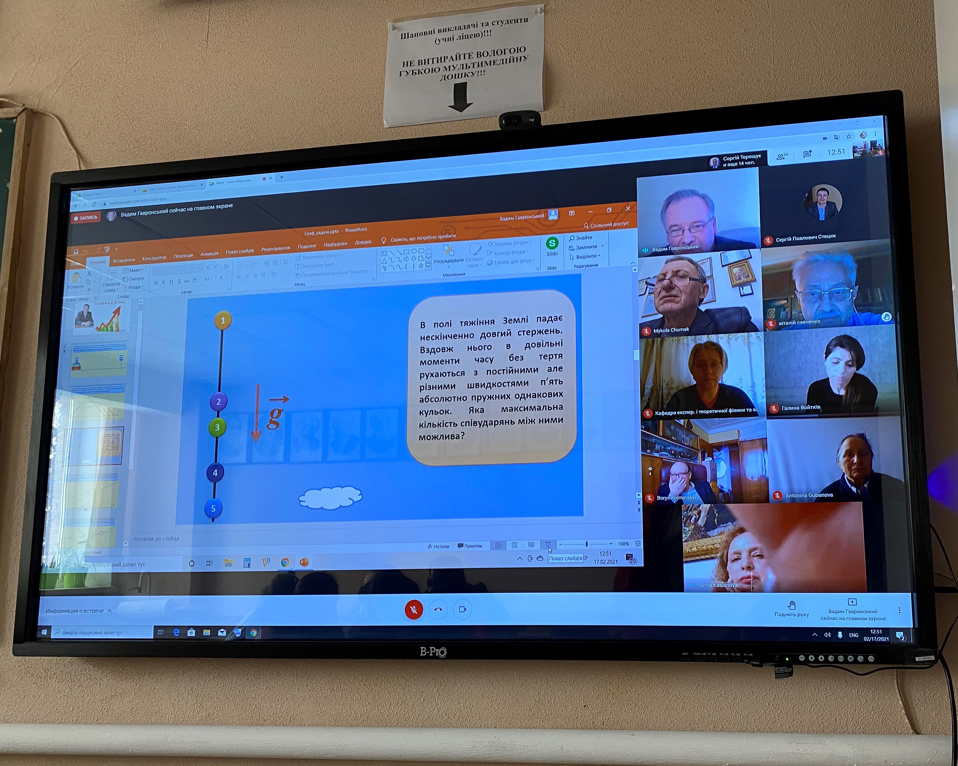 17 лютого 2021 року студенти 1 курсу академічних груп ХБ20Б спеціальності 014 «Середня освіта (Хімія)» та ПН20Б спеціальності 014 «Середня освіта (Природничі науки)» природничо-географічного факультету, в межах обраної ними для вивчення в 2 семестрі 2020-2021 н.р. вибіркової дисципліни «МЕТОДИ РОЗВ’ЯЗУВАННЯ ФІЗИЧНИХ ЗАДАЧ» кафедри природничих наук та методик їхнього навчання, взяли участь у черговому засіданні Всеукраїнського науково-методичного семінару «АКТУАЛЬНІ ПИТАННЯ МЕТОДИКИ НАВЧАННЯ ФІЗИКИ ТА АСТРОНОМІЇ В СЕРЕДНІЙ ТА ВИЩІЙ ШКОЛІ», присвяченого питанню розв’язування задач в системі навчання фізики та астрономії. Формат зустрічі – дистанційний, з використанням сервісу конференц-зв’язку Google Meet for Education.