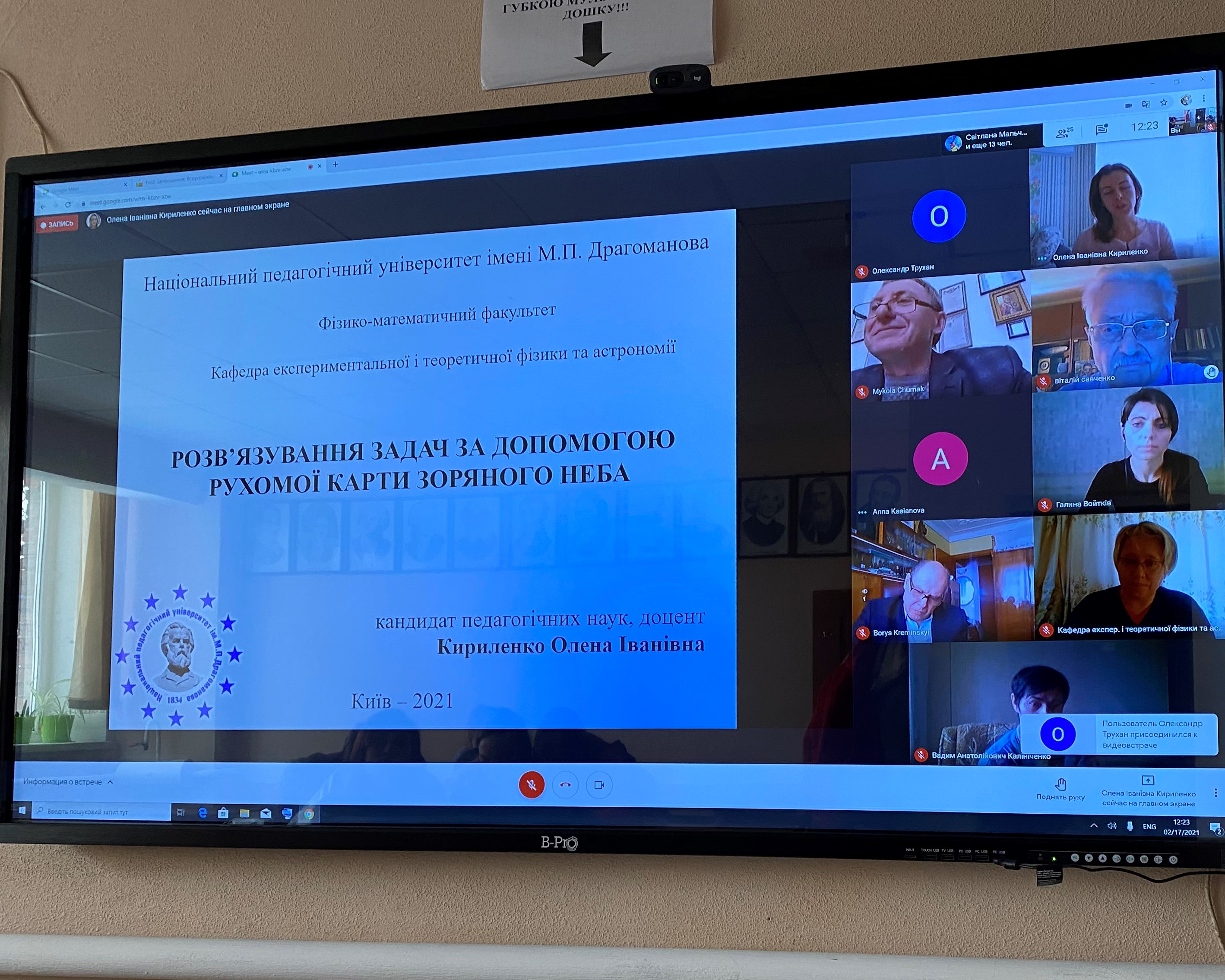 - «Розв’язування задач з астрономії за допомогою рухомої карти зоряного неба» – КИРИЛЕНКО Олена Іванівна – кандидат педагогічних наук, доцент, доцент кафедри експериментальної і теоретичної фізики (НПУ імені М.П. Драгоманова)