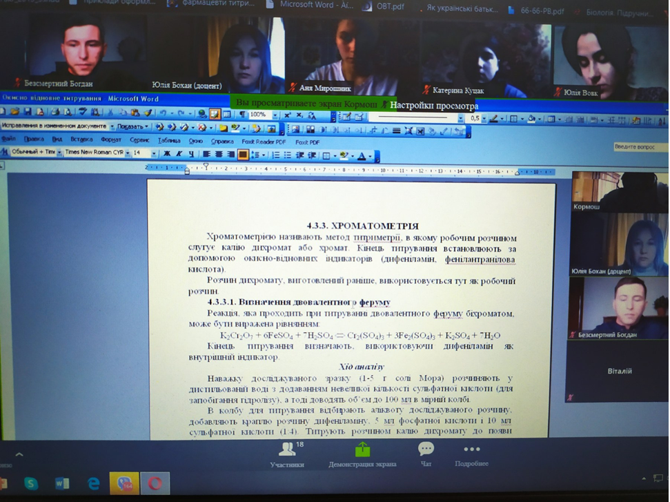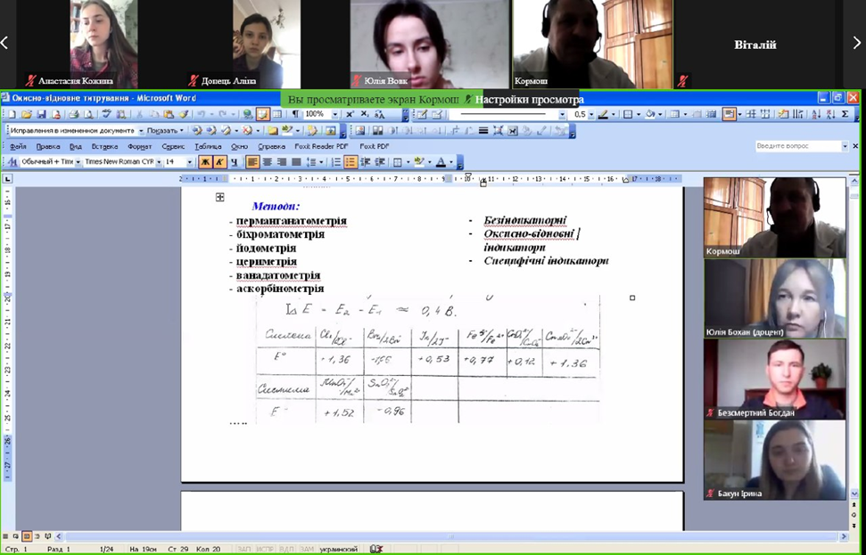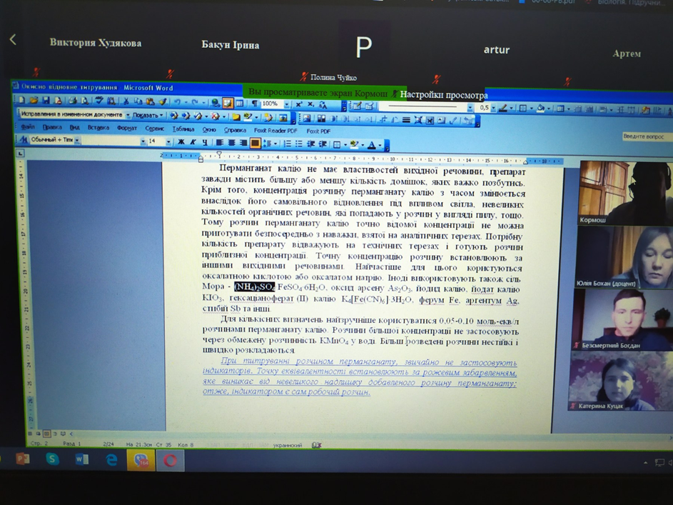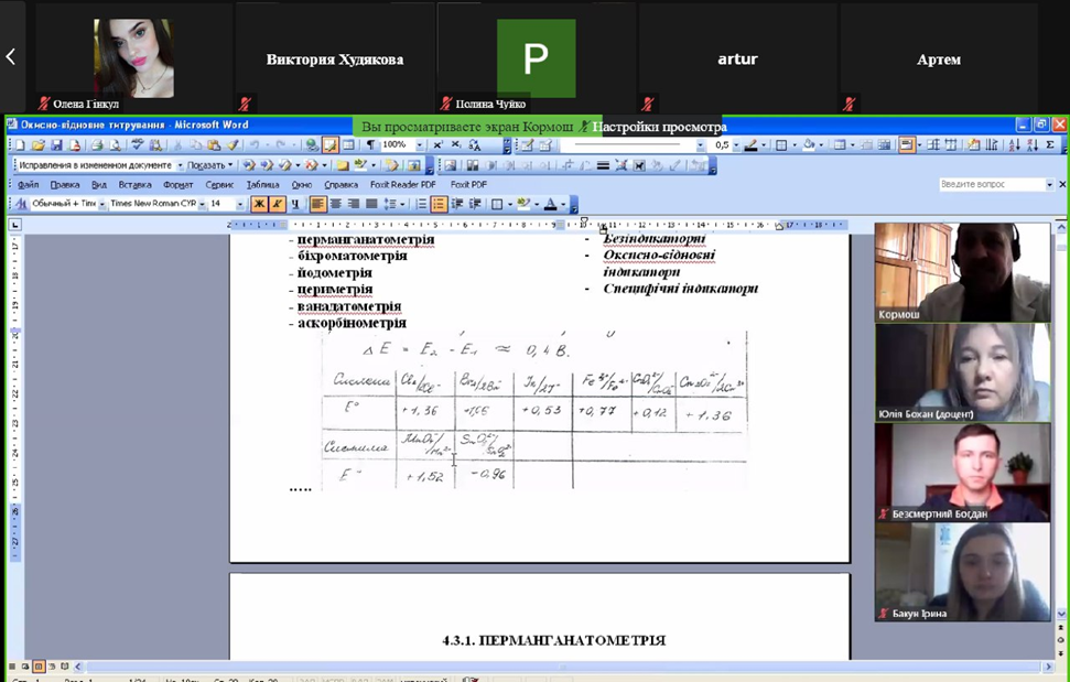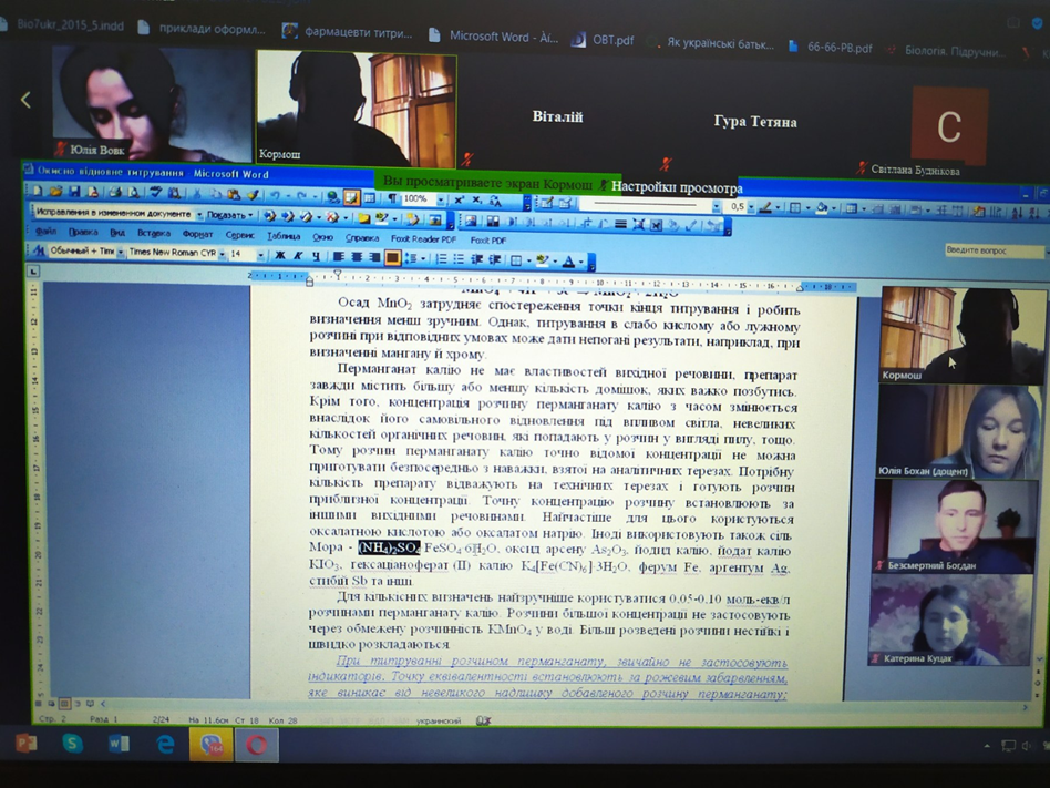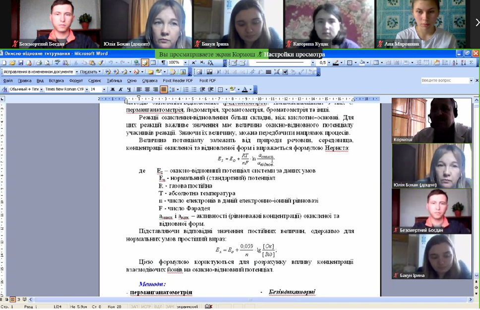Студенти-хіміки та природничники слухали онлайн-лекцію професора Ж.О. Кормоша про «Окисно-відновне титрування в аналітичній практиці»