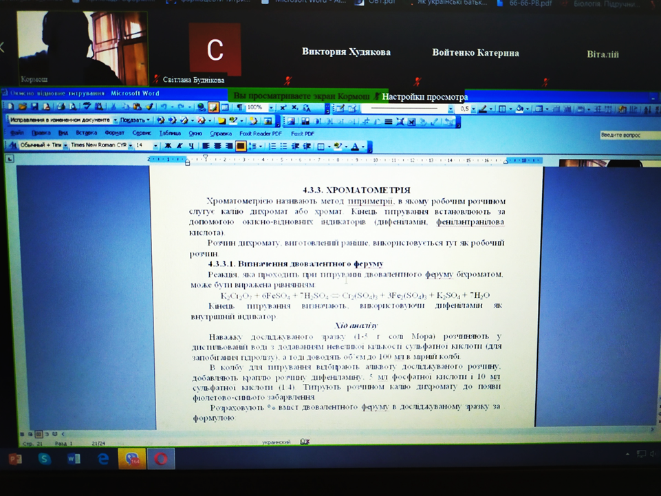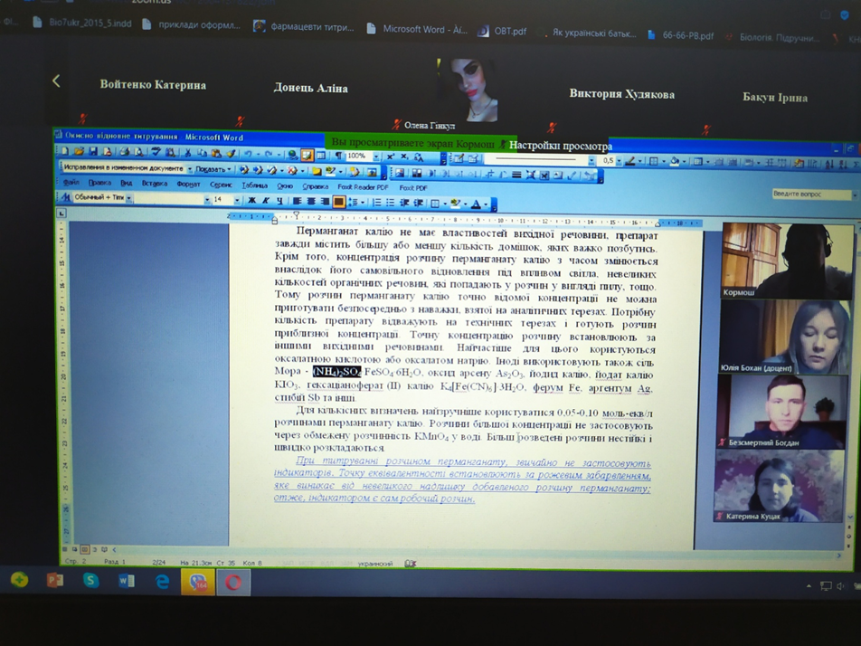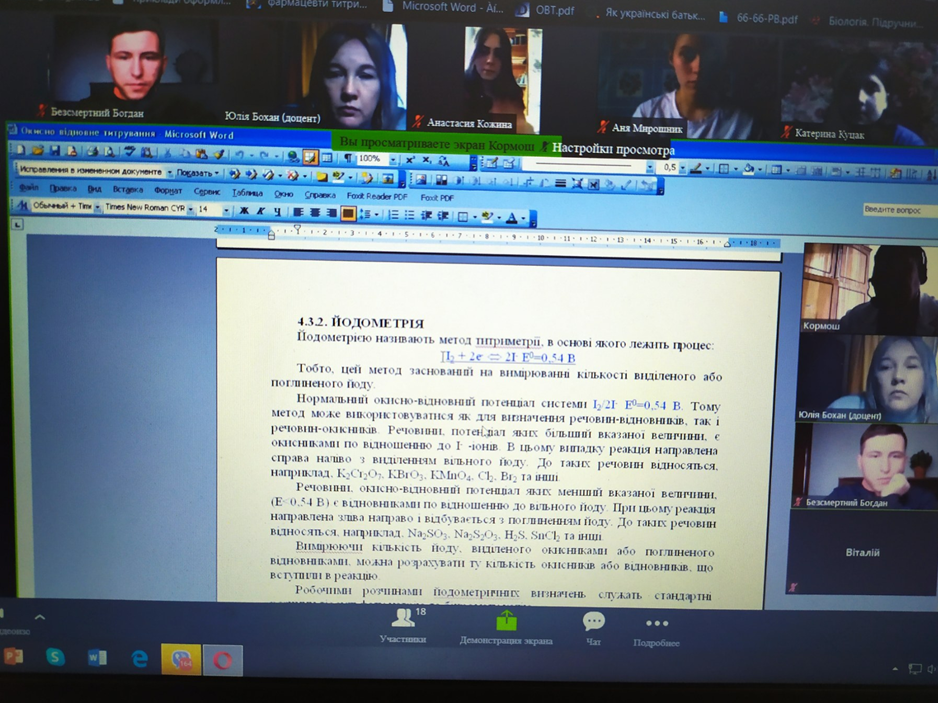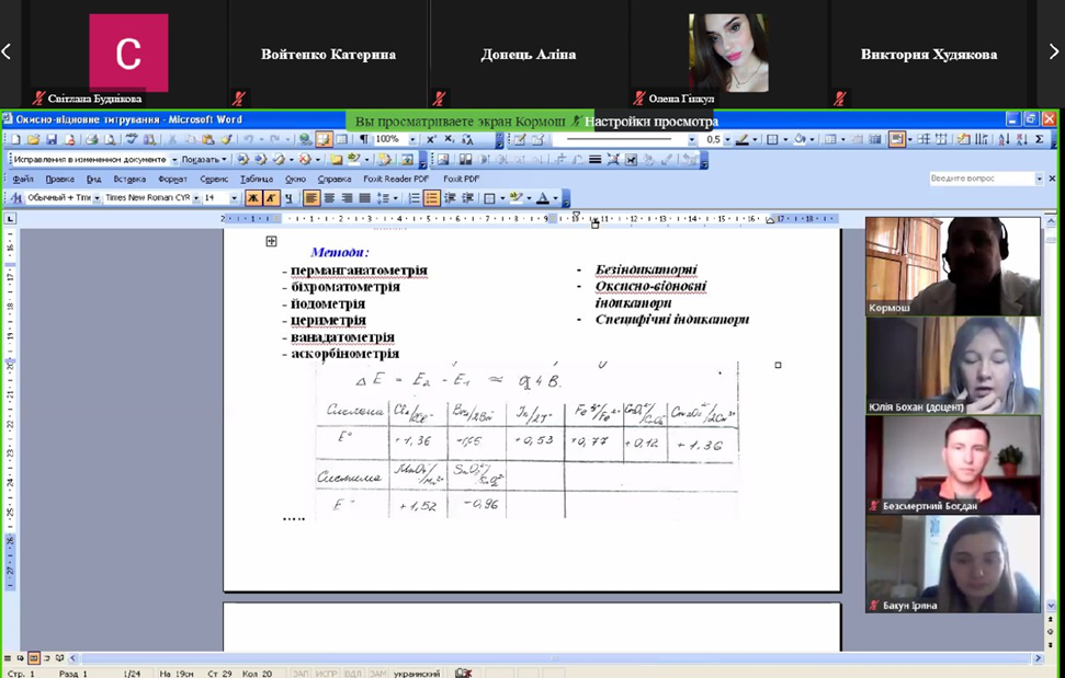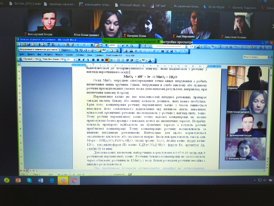 Студенти-хіміки та природничники слухали онлайн-лекцію професора Ж.О. Кормоша про «Окисно-відновне титрування в аналітичній практиці»