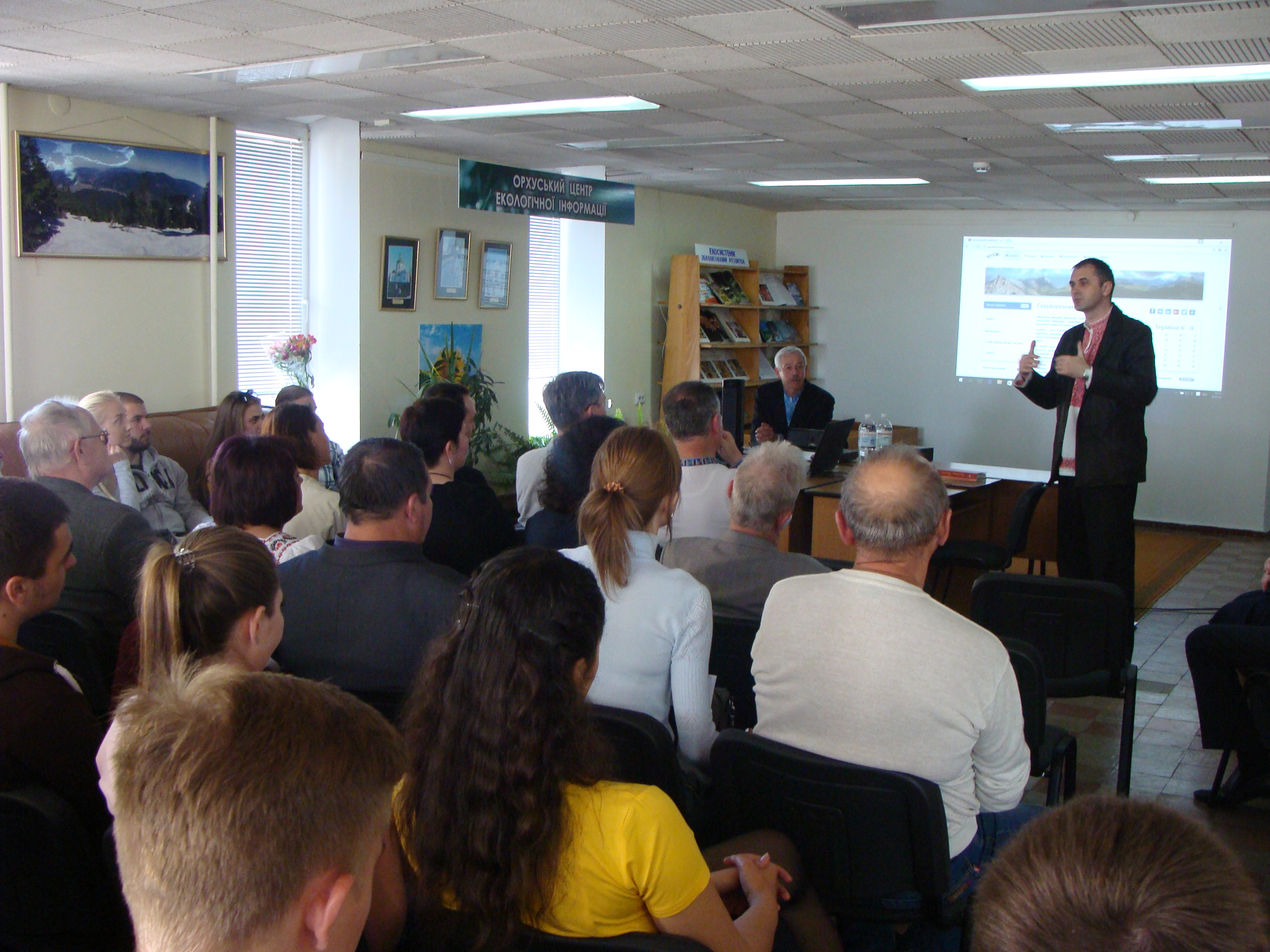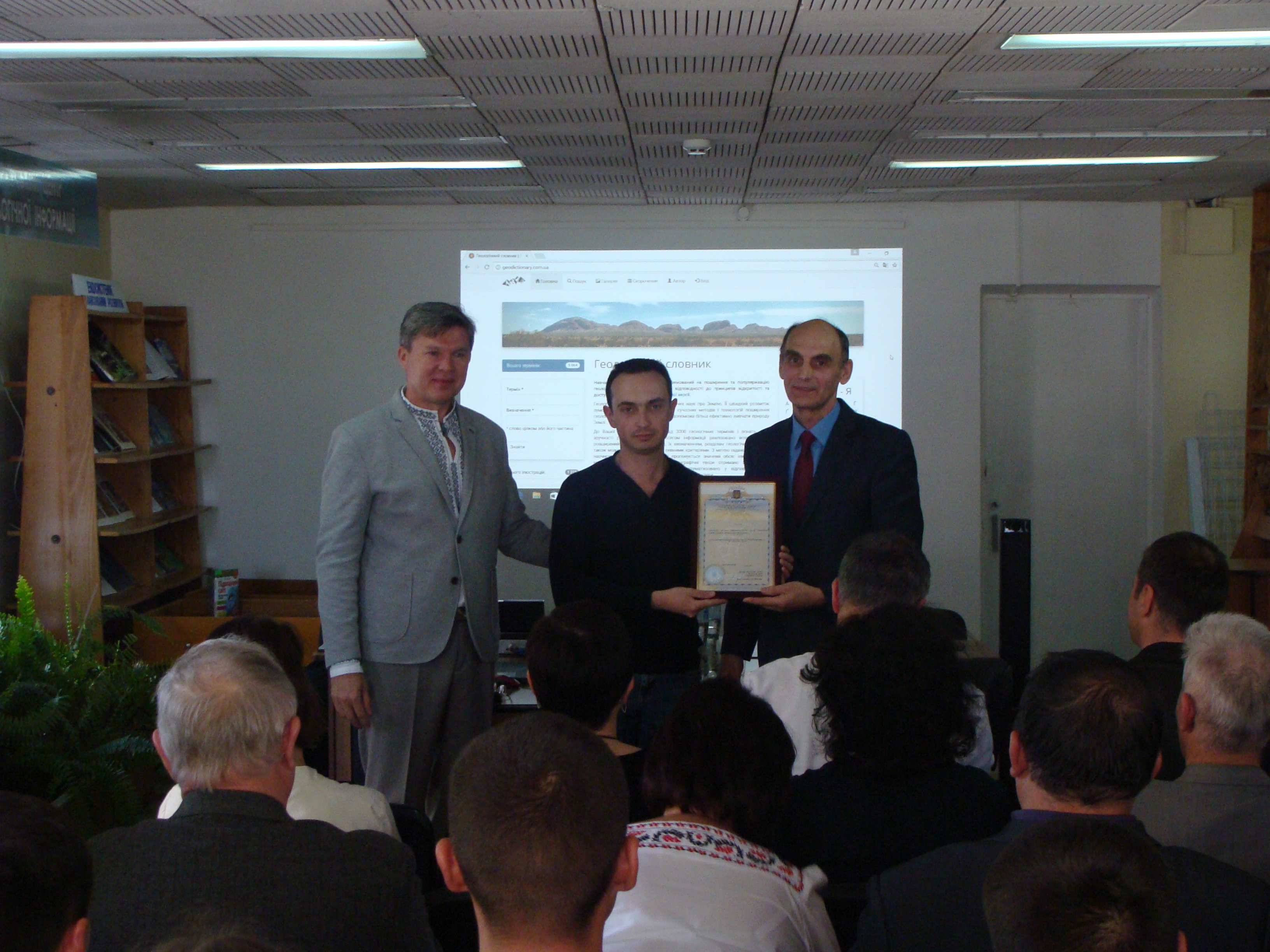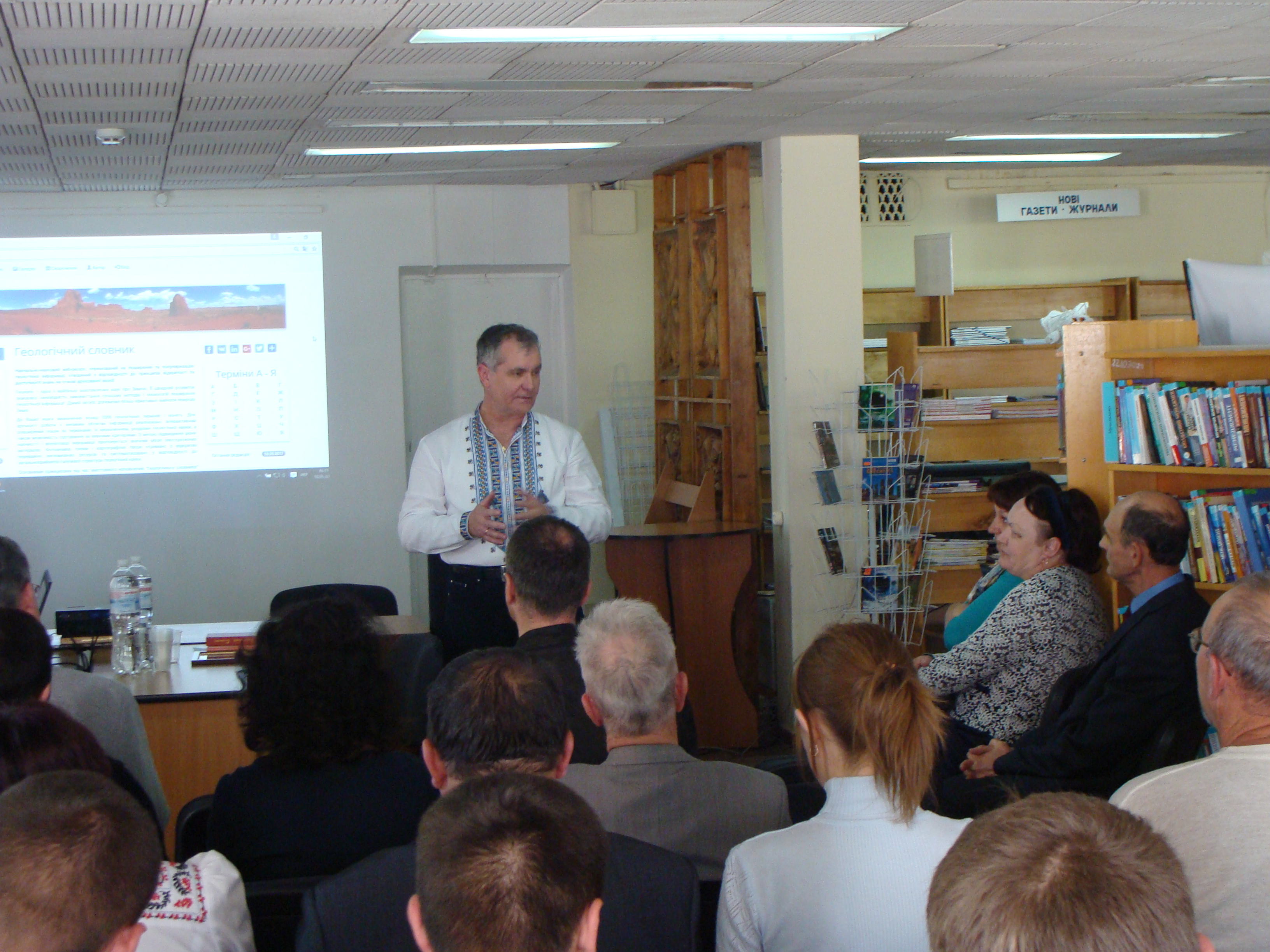 Презентація інформаційно-освітньої системи «Геологічний словник: відкритий навчально-науковий веб-ресурс» відбулася 18 травня 2017 року в Орхуському центрі екологічної інформації Обласної універсальної наукової бібліотеки ім. Д. Чижевського.