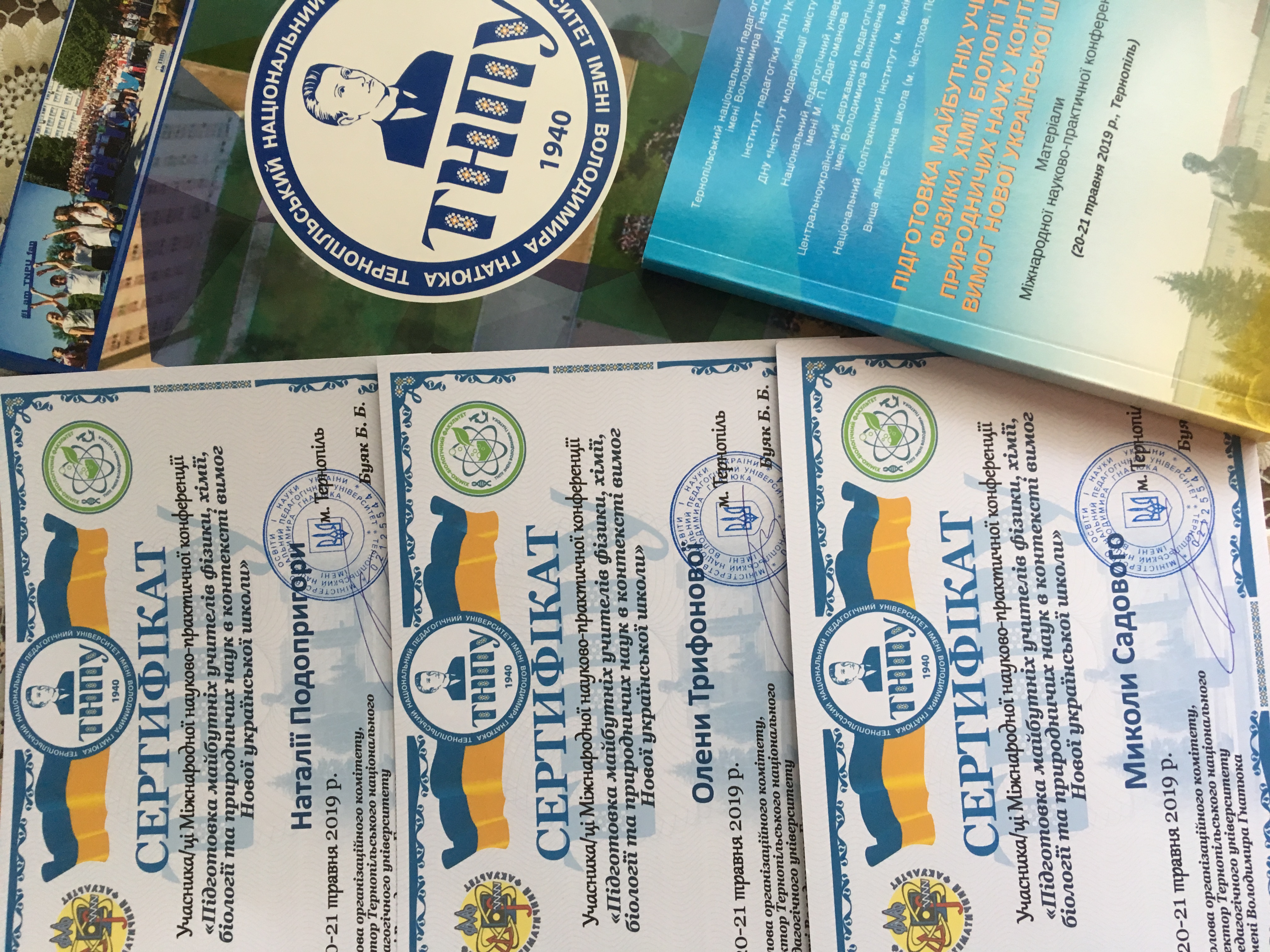 20-21 травня 2019 року, на базі Тернопільського національного педагогічного університету імені Володимира Гнатюка, а також за співучасті Центральноукраїнського державного педагогічного університету ім. В. Винниченка (кафедри природничих наук та методик їхнього навчання), відбулася Міжнародна науково-практична конференція «Підготовка майбутніх учителів фізики, хімії, біології та природничих наук у контексті вимог Нової української школи», присвячена обговоренню питань реалізації ключової освітньої реформи МОН України, що стосується основних підходів до модернізації змісту природничої освіти.